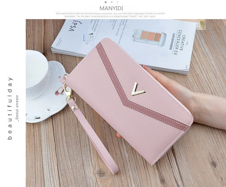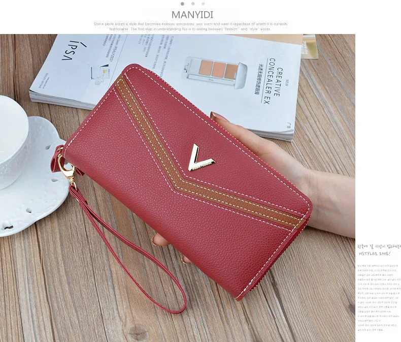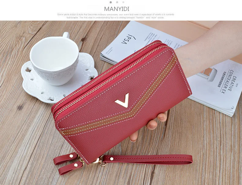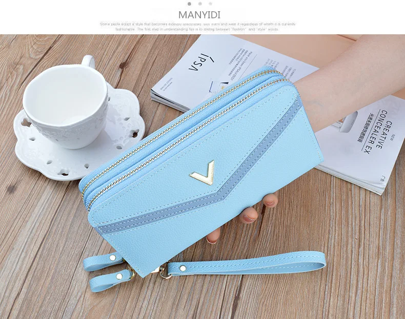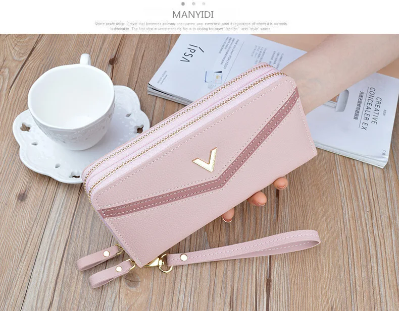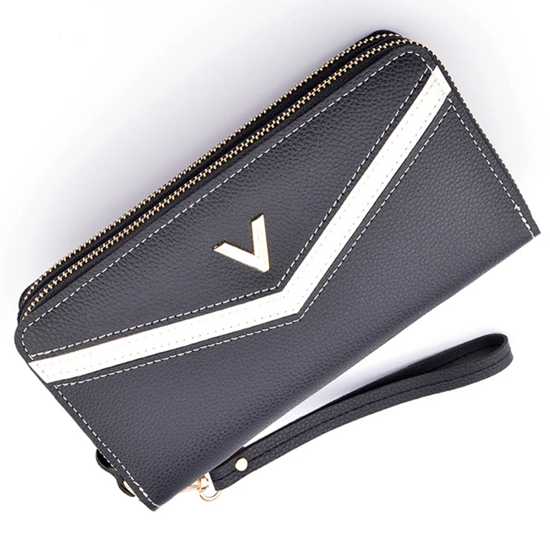 Новинка, женские длинные кошельки, двойная молния, клатчи, кошелек, большая вместительность, модный кошелек на ремешке, кошелек для наличных, держатель для карт, женские кошельки