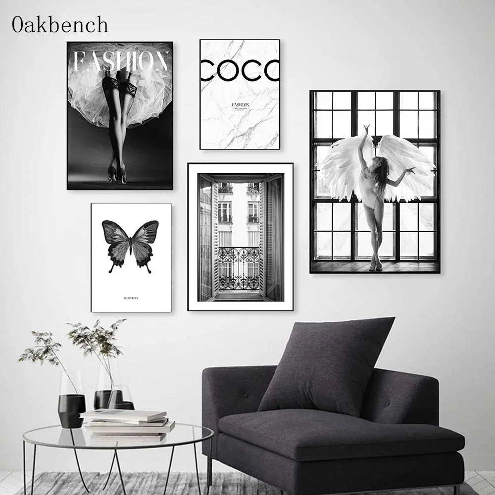 Модный плакат с принтом бабочки балерины холст картина черно-белые настенные плакаты современные настенные картины декор для гостиной