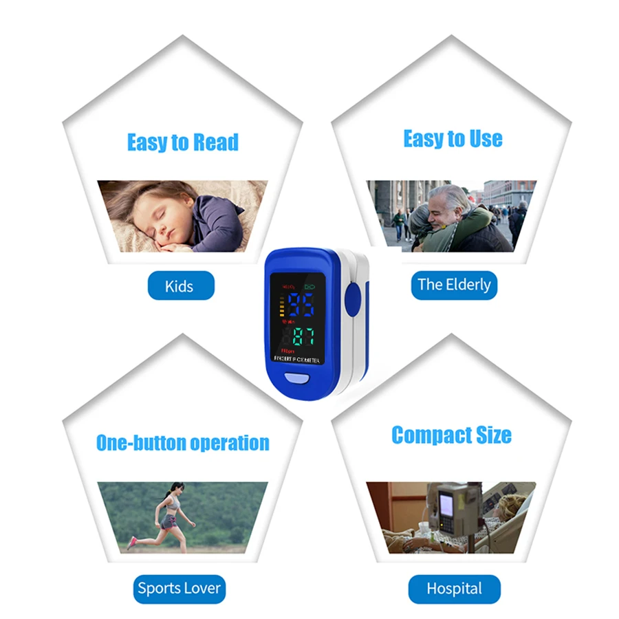 Этот Пульсоксиметр является портативным устройством для измерения уровня насыщения крови кислородом SpO2 для домашнего и личного использования. Измерение легко и быстро, вам просто нужно поместить палец внутри фотоэлектрического датчика, и точные измерения будут отображаться на экране. Подходит для всех возрастов, выберите один, чтобы иметь хорошую команду здоровья вашей семьи и себя, чтобы предотвратить некоторые сердечно-сосудистые и цереброваскулярные заболевания!