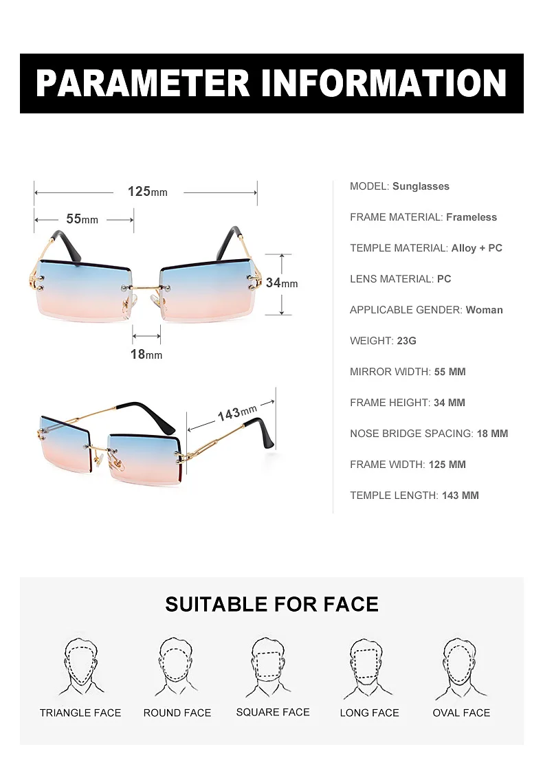 Солнцезащитные очки мужские и женские прямоугольные, без оправы