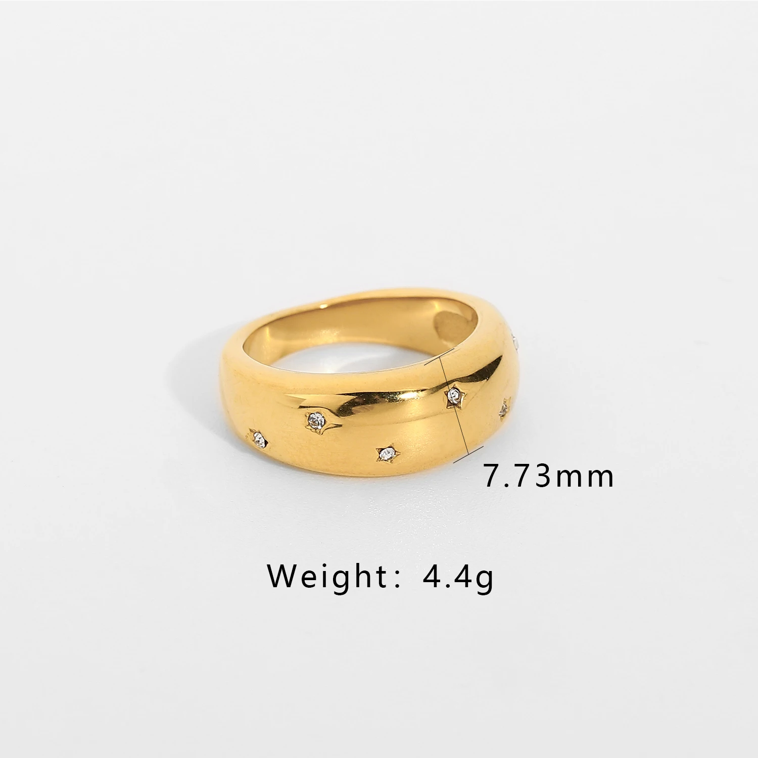 Романтическое массивное кольцо с цирконием в форме звезды для женщин, 18K золото, IP покрытие, нержавеющая сталь, водонепроницаемые Свадебные ювелирные изделия, кольца