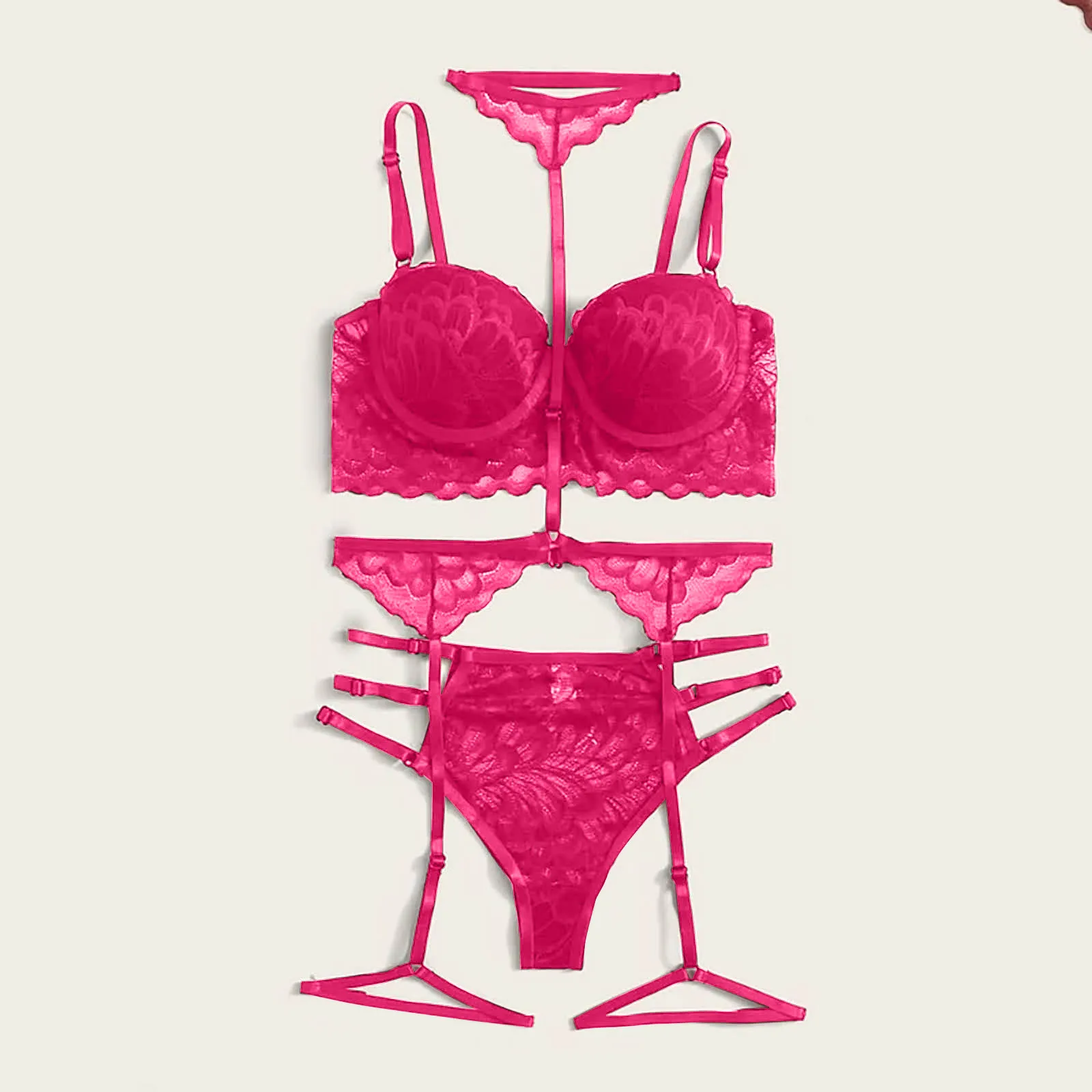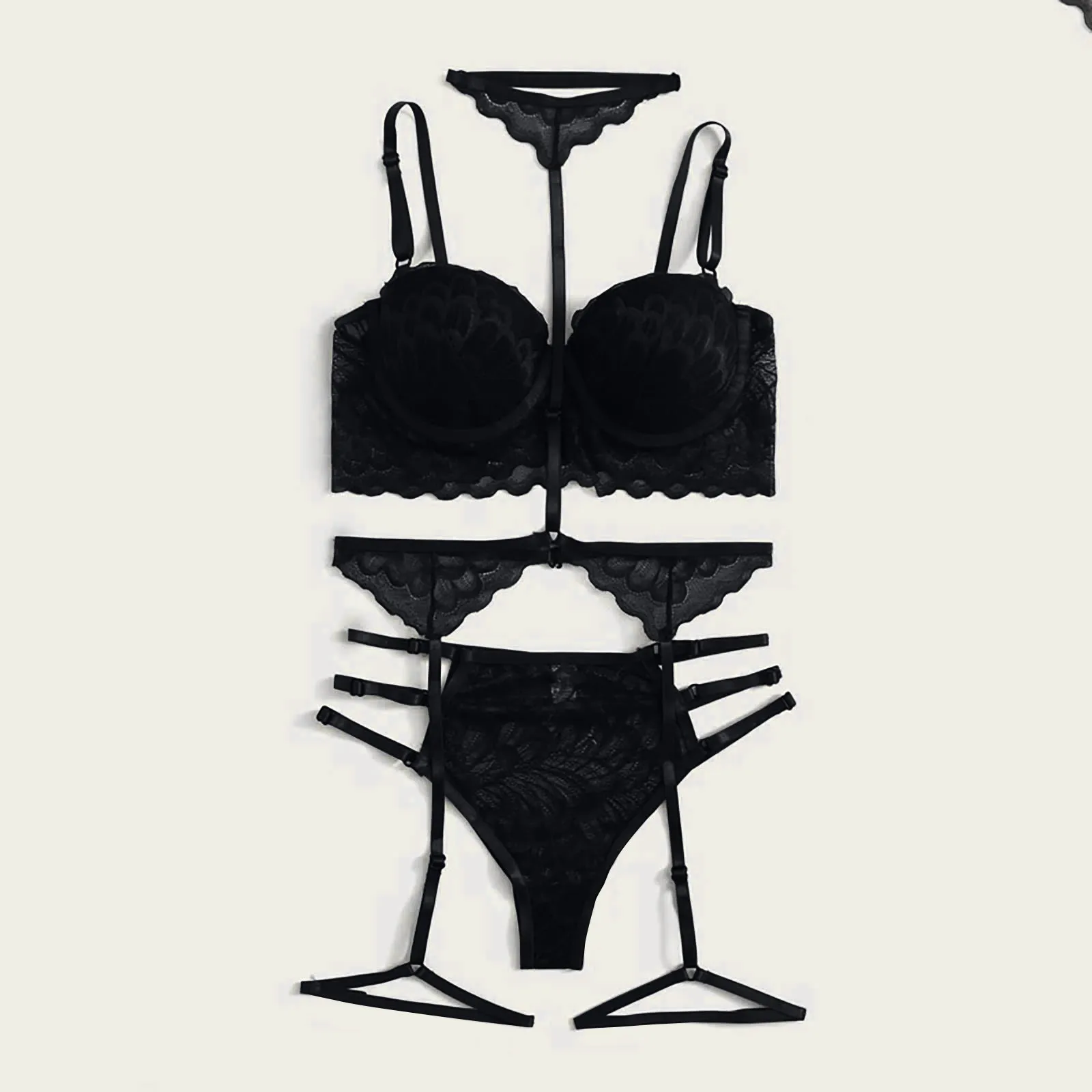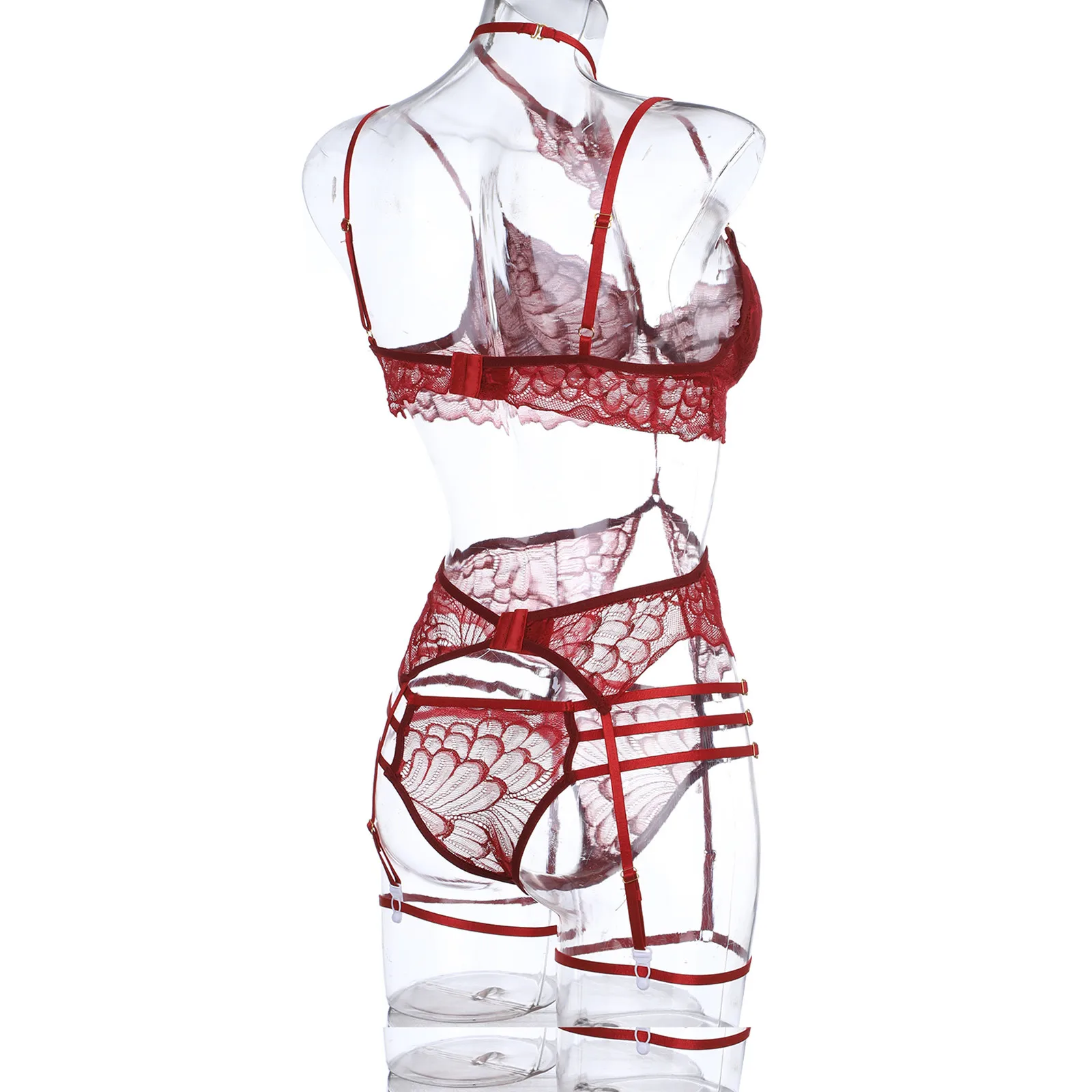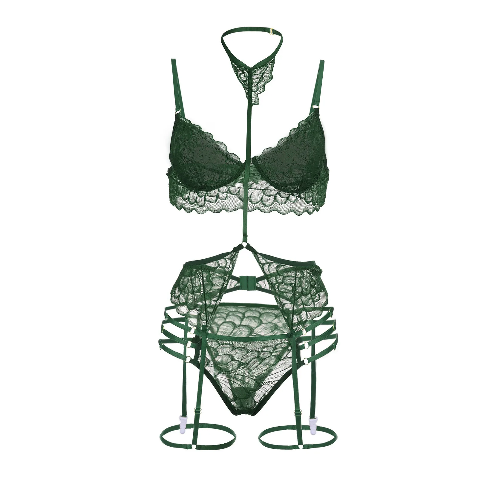Кружевной бюстгальтер на бретелях, трусики с подвязками, 3 шт. экзотические комплекты женского экзотического нижнего белья, сексуальный комплект нижнего белья с лямкой на шее, женская одежда для сна