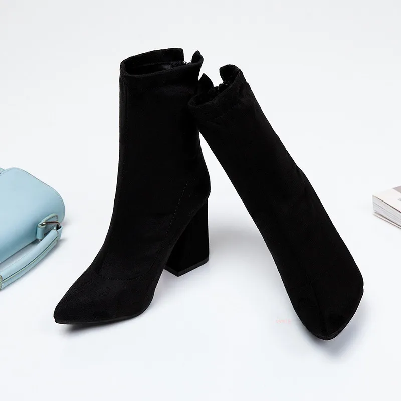 Женские удобные ботинки с острым носком, черные простые милые ботин...