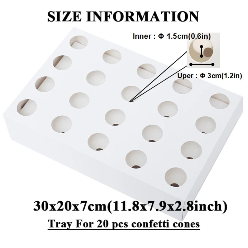 Информация о продукте:Отличная идея для демонстрации ваших свадебных конфетти для ваших гостей!Наш Лоток подходит для 20 конусы-конфетти. Они делают его действительно легким для гостей, чтобы взять конус готов к бросанию и получить эти все важные фотографии!Обратите внимание: все предметы с плоской упаковкой для самостоятельной сборки. (Только держатель, без конусов)