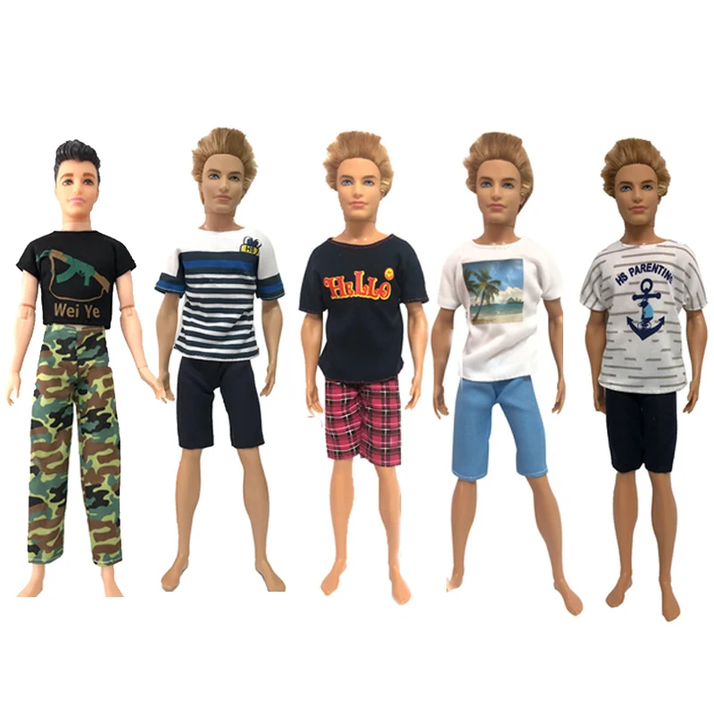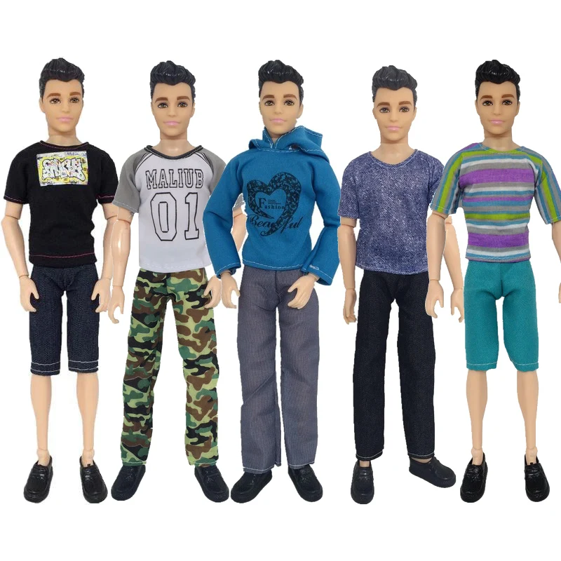 5 предметовпартия, модная одежда для Кена ручной работы, футболка, штаны, жилет, повседневный костюм, Одежда для кукол, аксессуары для кукол Кена 16