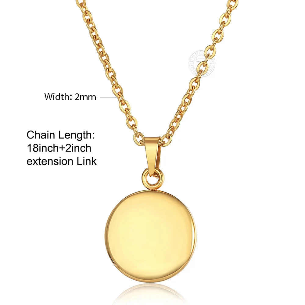 Ожерелье с гравировкой имени для женщин и мужчин, золотой цвет, маленький изящный медальон, кулон с диском из нержавеющей стали, Ювелирное Украшение для монет, LKP664