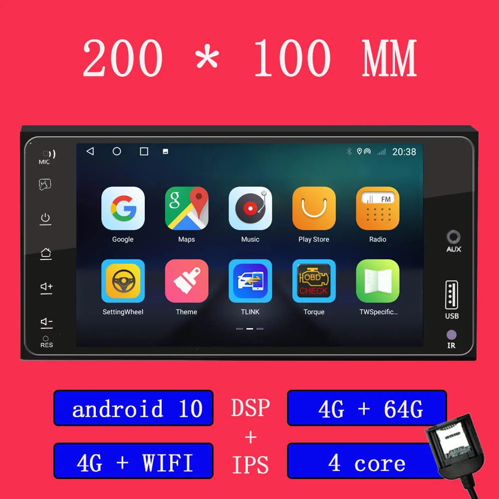Автомагнитола для Toyota VIOS CROWN CAMRY HIACE PREVIA RAV4 Corolla Verso, мультимедийный проигрыватель на Android 10,0 с радио и DSP, радио, навигацией, IPS экраном, 2Din DVD