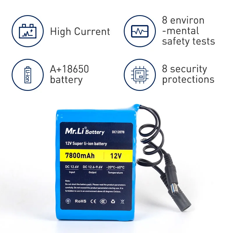 Mr.Li Ion аккумулятор 12V Батарея 18650 Перезаряжаемые 12V 7800 мАч, комплект литий-ионный батарей Батарея-серые кисточки с 1A Зарядное устройство