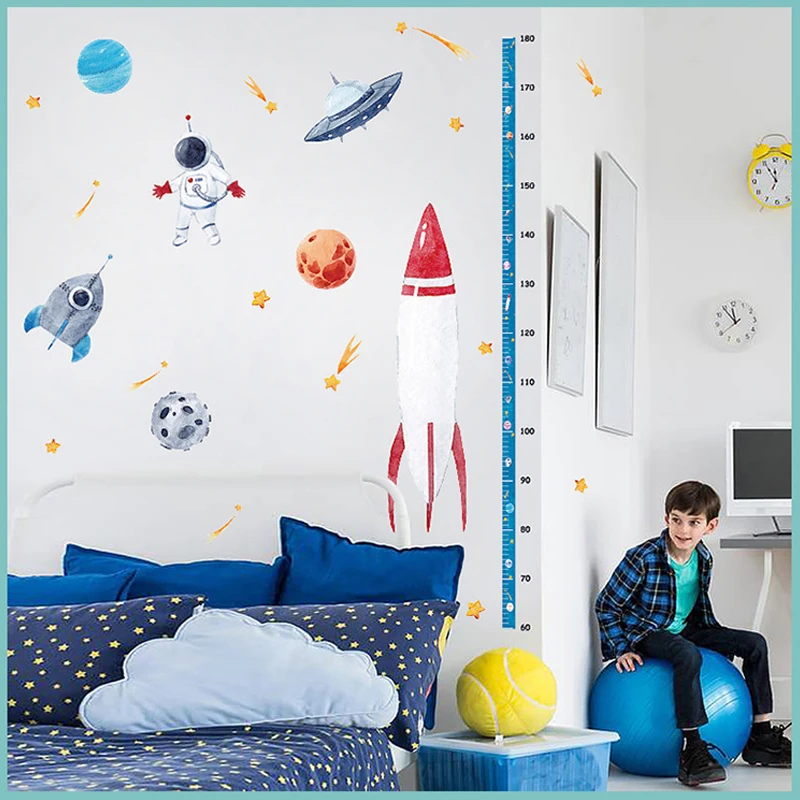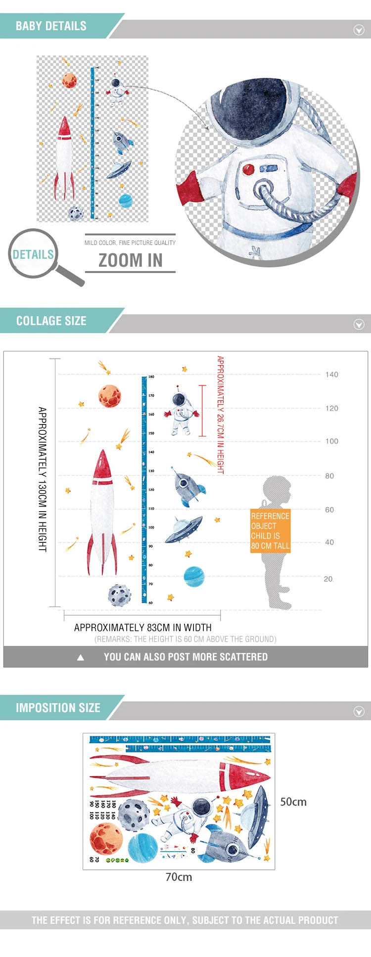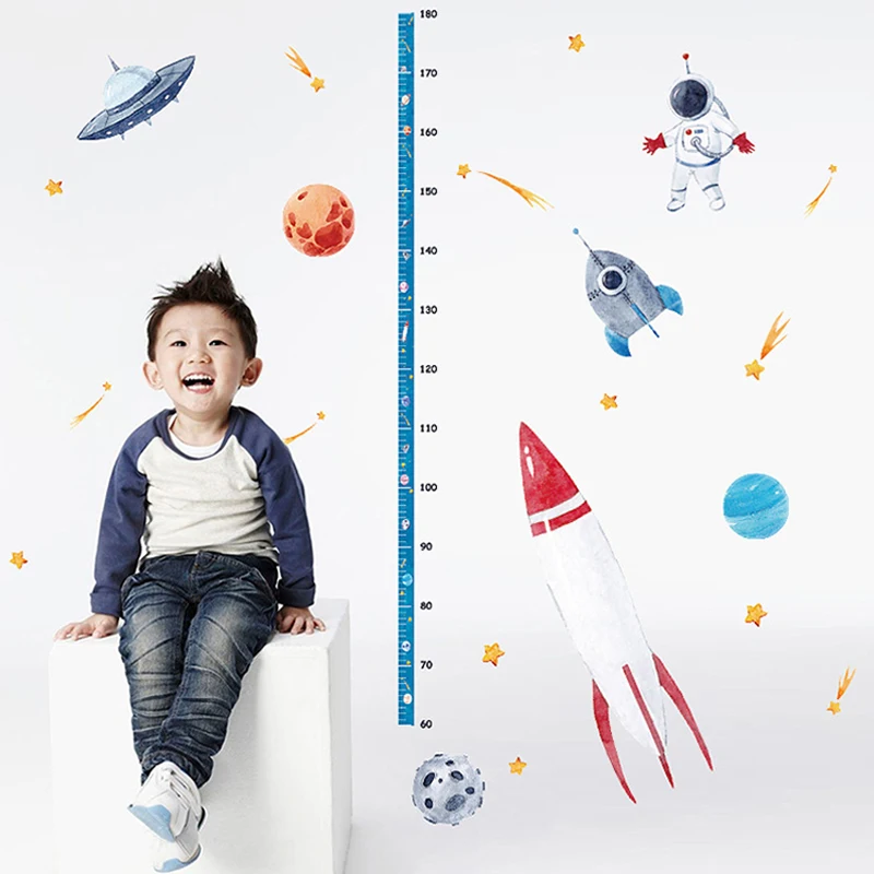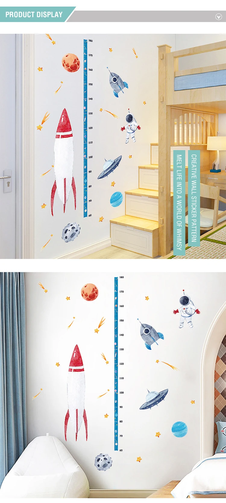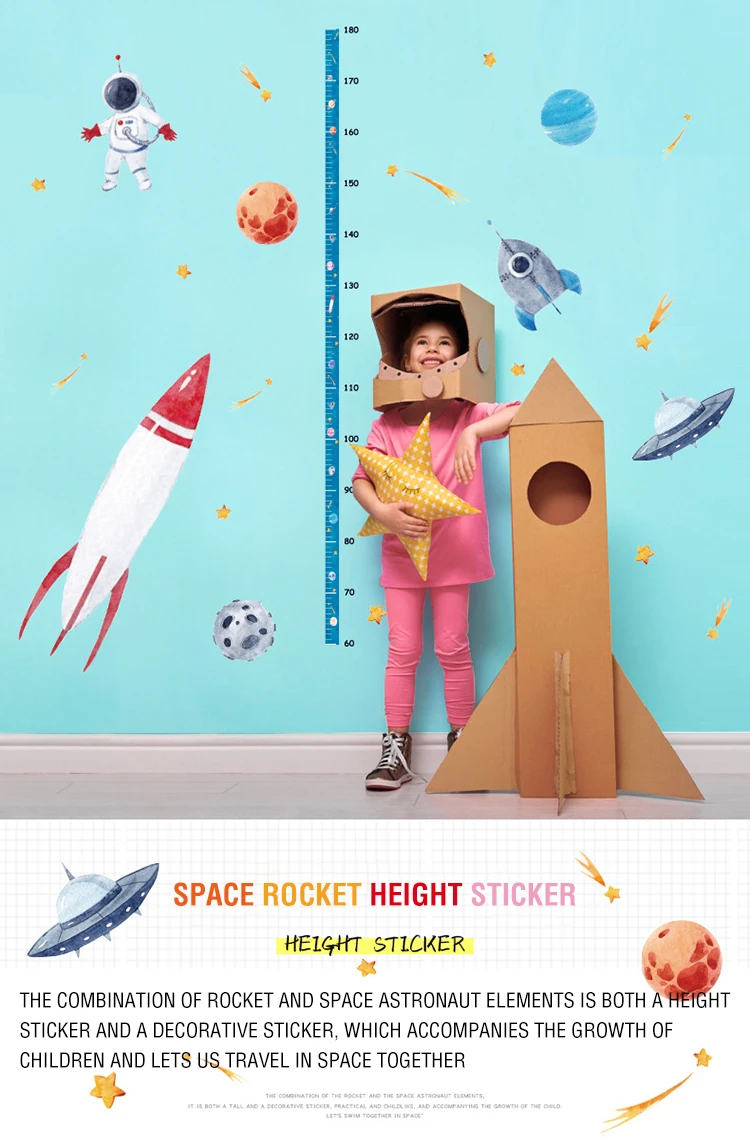 Мультяшная Настенная Наклейка с измерением роста ракеты, детская Таблица роста, Настенный декор для детской комнаты, художественная наклейка, декор для детской комнаты