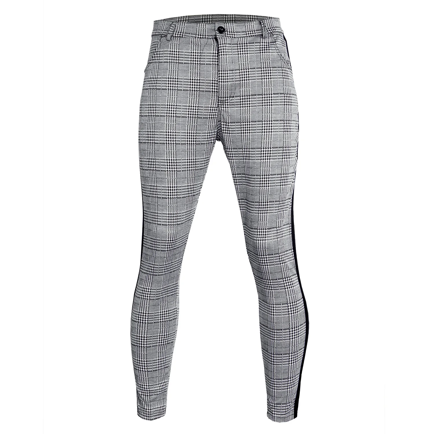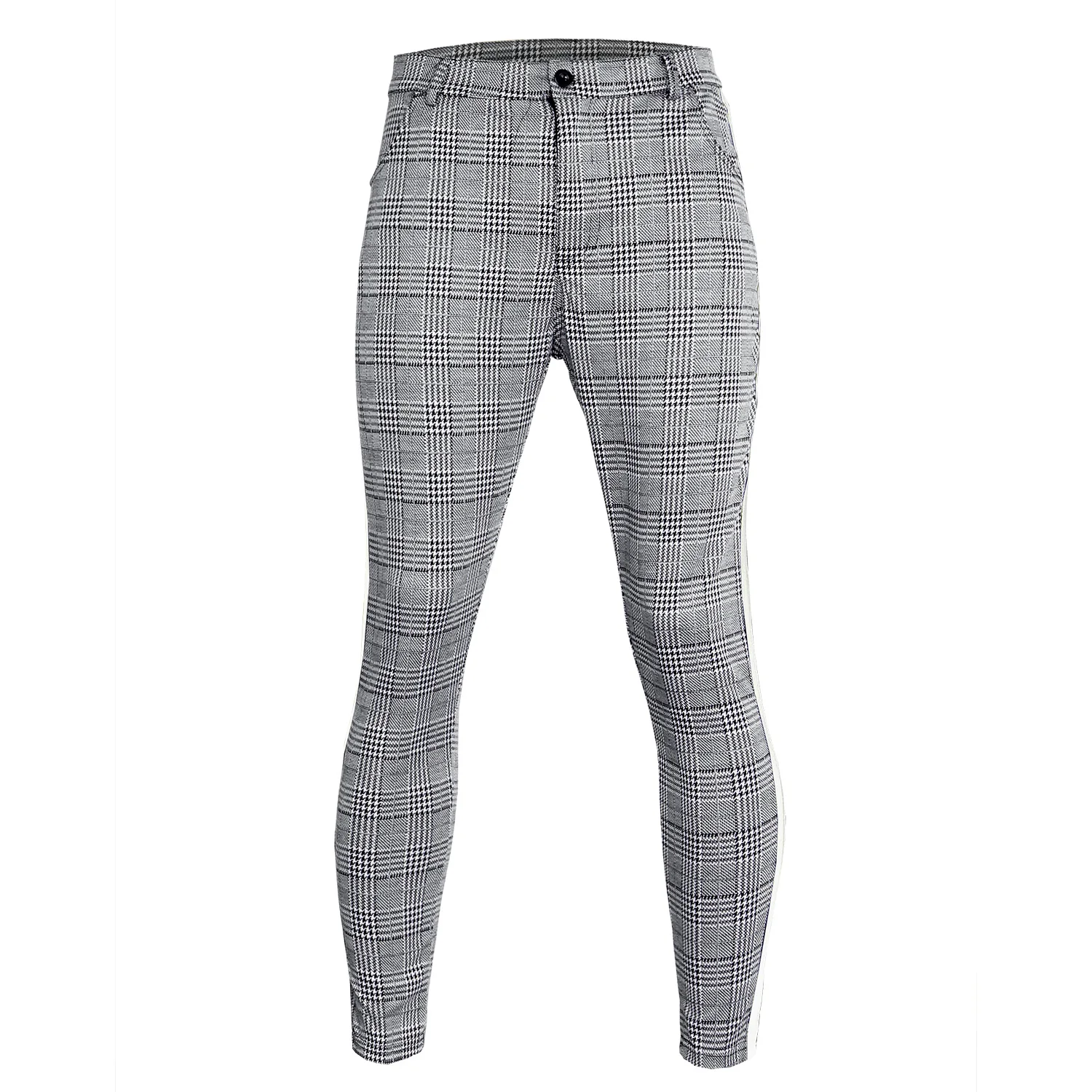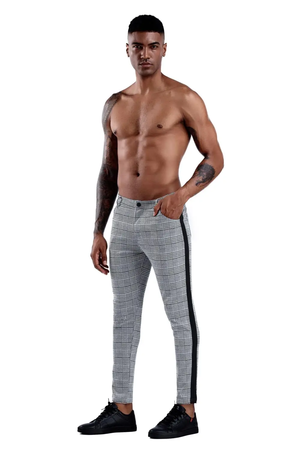 Облегающие мужские чиносы, брюки чиносы в клетку, серые, с полоскам...