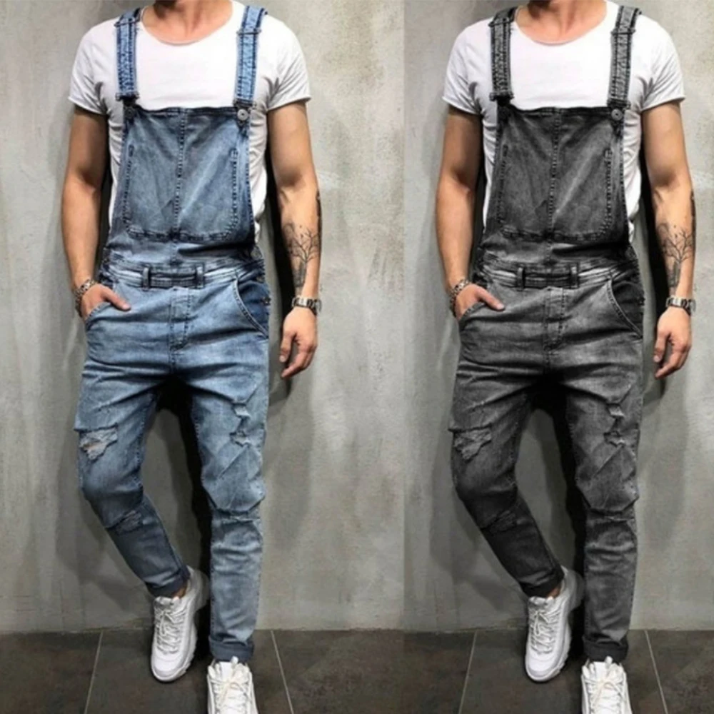 2021 KB Модные мужские рваные джинсовые комбинезоны длиной до щиколотки с надписью Состаренный джинсовый комбинезон для мужчин брюки на подтяжках