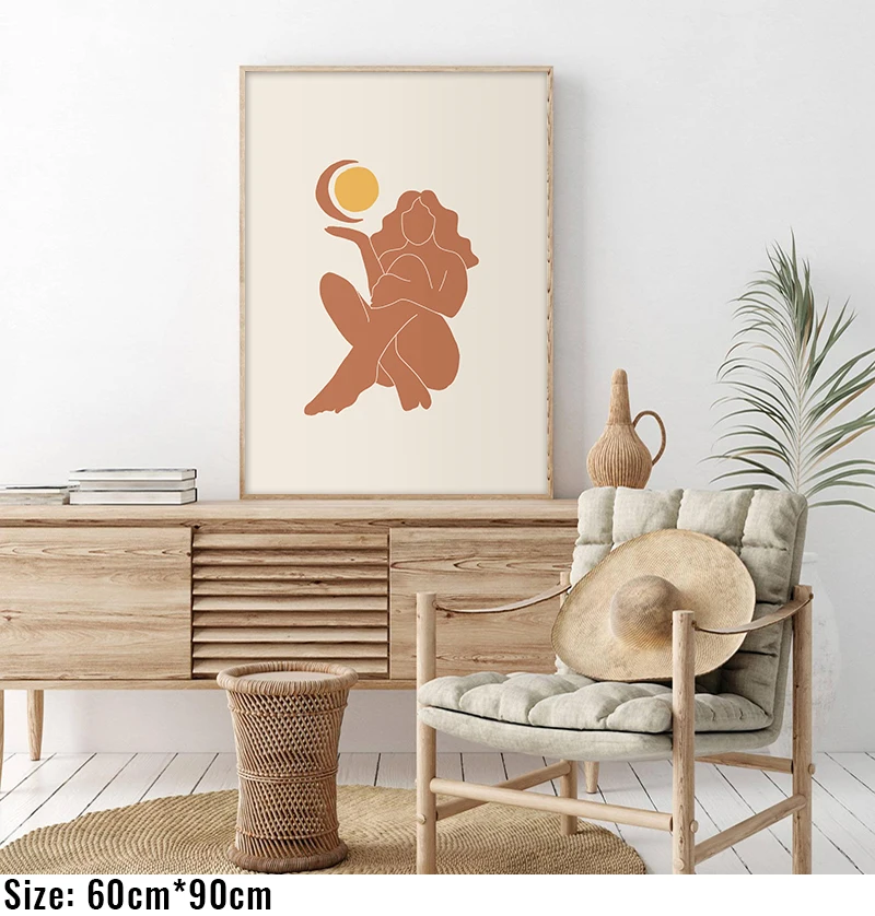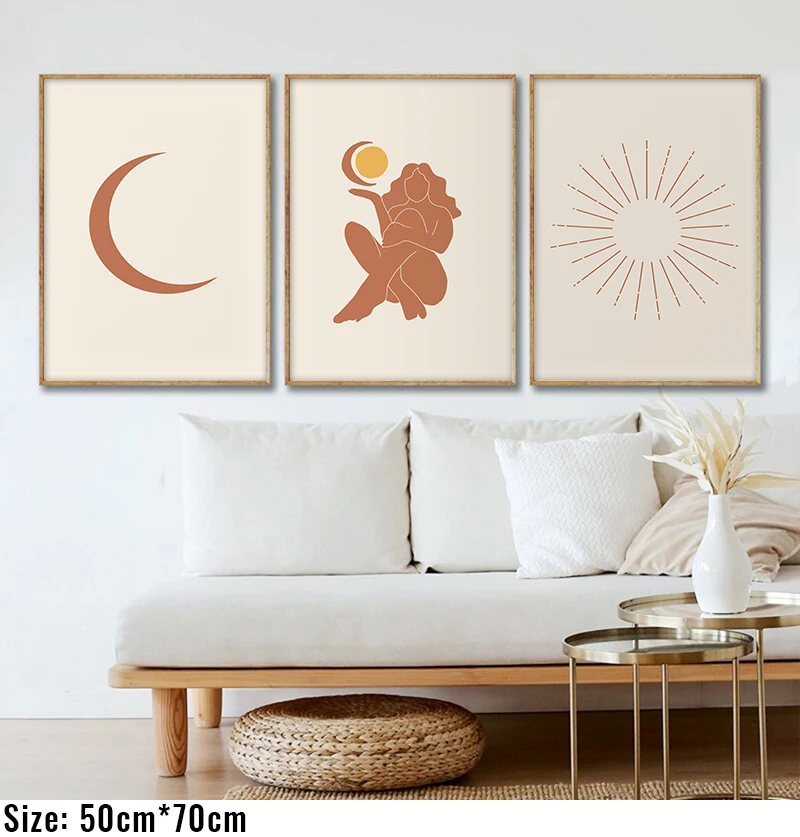Абстрактная Картина на холсте с изображением Солнца и Луны в стиле бохо середины века, Настенная картина нейтральных цветов для гостиной, домашний декор