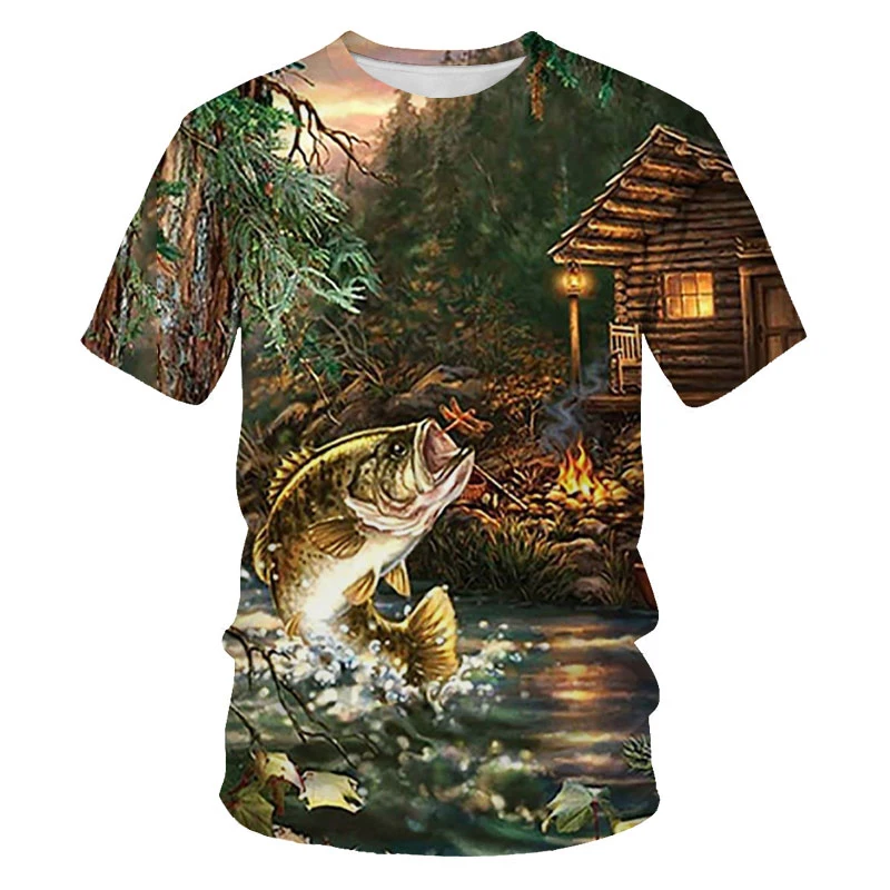 Мужская футболка с круглым вырезом, летняя свободная дышащая футболка с короткими рукавами и 3D принтом в виде рыбы