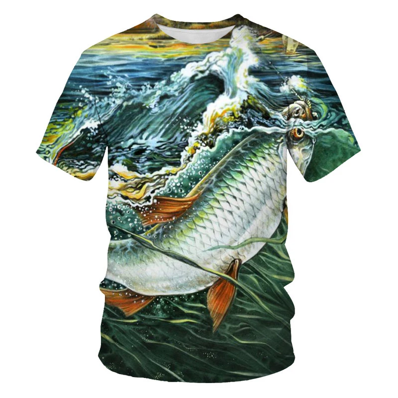 Модная мужская и женская футболка с 3D-принтом океанской рыбалки, и...