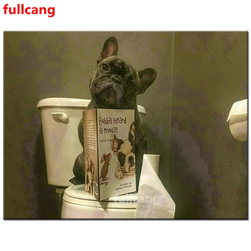 5D алмазов картина камни в форме ромба круглый дрель панель в форме французского бульдога туалет украшение стразы из картина, Алмазная мозаика JX2122