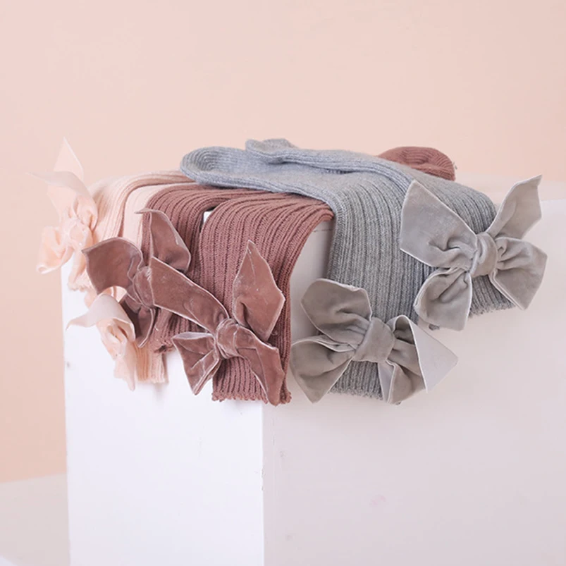 Гольфы с большим бархатным бантом для новорожденных девочек, осенне...