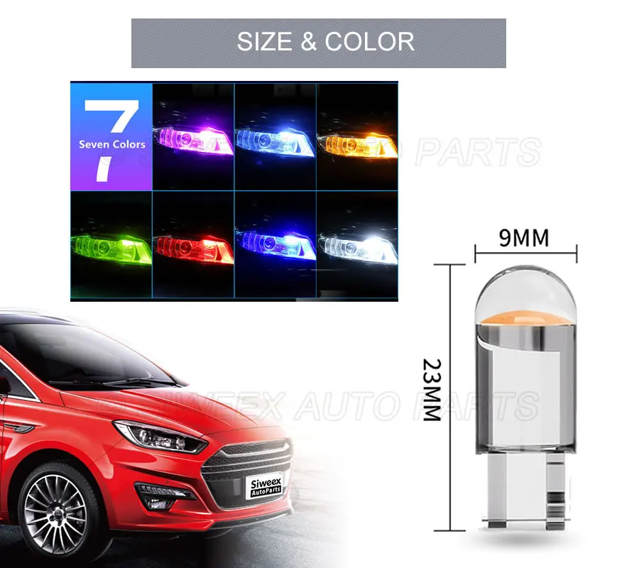 Светодиодный указатель поворота T10 W5W 194 192 168 автомобиль на COB, лампа дверные лампы номерного знака, купольная лампа для чтения, 12 В постоянного тока, белый, синий, красный