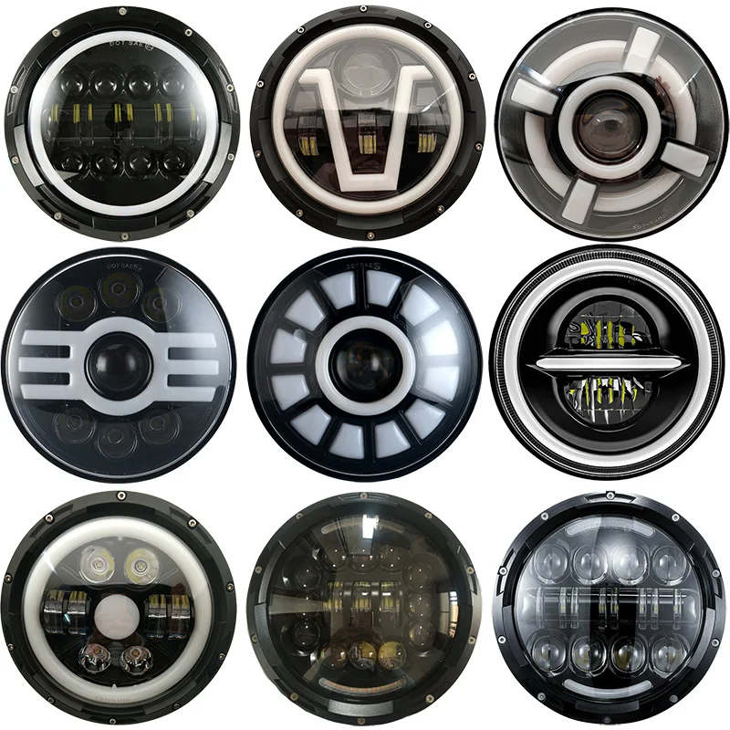 7-дюймовые автомобисветодиодный ные фары для Lada Niva, 7-дюймовые гало, передние фары с дневными ходовыми огнями для Jeep Wrangler JK, Nissan Patrol Y60