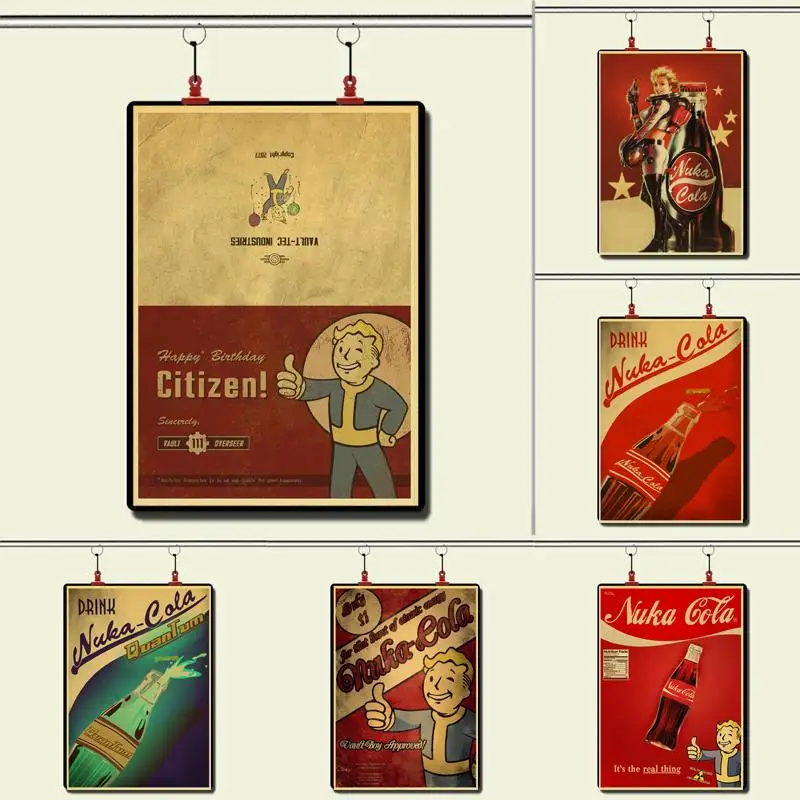 Nuka Cola Fallout 2345 винтажный бумажный постер настенная живопись...