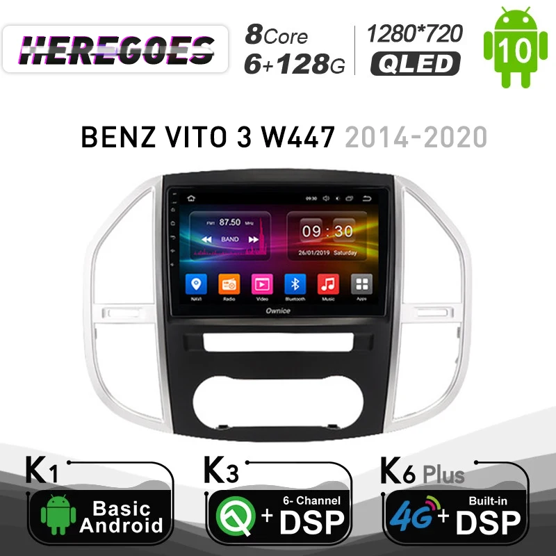 Подходит для Для Mercedes Benz Vito 3 W447 2014 - 2020 Примечание: Это радио без DVD-привода Если оригинальная Автомагнитола имеет функцию ниже, будет ли головное устройство Ownice Совместимо с? * Управление рулевым колесом --- да * Состояние хоста --- да * Поддержка оригинального автомобильного усилителя, но необходимо доплатить за покупку оптического декодирования Canbus MOST25-01 ниже Внимание: Вышеуказанная информация предназначена только для справки, иногда она может быть несовместима с некоторыми автомобилями из-за того, что автомобили производятся в разных странах в разных годовых версиях, спасибо за понимание. K6 Plus 128G ---UIS7862| Android 10,0 |8 ядер (A75 * 2 + A55 * 6) | 6G + 128G | 2.5D + IPSQLED 1280*720 | Радио 7708 | Усилитель 7851L K6 Plus 64G ---UIS7862| Android 10,0 | 8 ядер (A75 * 2 + A55 * 6) | 4G + 64G | 2.5D + IPSQLED 1280*720 | Радио 7708 | Усилитель 7851L K6 Plus 32G ----UIS7862| Android 10,0 | 8 ядер (A75 * 2 + A55 * 6) | 3G + 32G | 2.5D +IPS QLED 1280*720 | Радио 7708 | Усилитель 7388 K3-PX5 ------- PX5 | Android 10,0|8 ядер | 2G + 32G | 2.5D + TN1024*600 | Радио 7708 | Усилитель7851L K3-PX6 ------- PX6 | Android 10,0 | 6 ядер (A75 * 2 + A53 * 4)| 4G + 64G | 2.5D +IPS 1280*720 | Радио 7708 | Усилитель 7851LK1-Low ------- AC8227L | Android 6,0 | 4 ядра| 1G + 16G | 2.5D + TN 1024*600 | Радио 7786 | Усилитель 7388K1-High ------- AC8227L | Android 8,1 |4 ядра | 2G + 16G | 2.5D + TN 1024*600 | Радио 7786 | Усилитель 7388