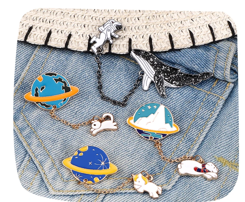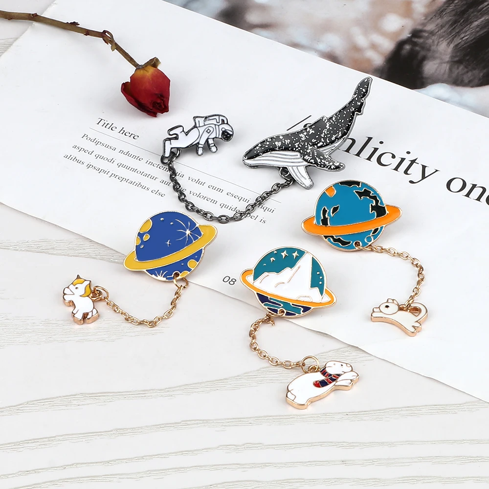 Креативная Вселенная животные эмалированные булавки забавная подвеска в виде космонавта и планеты морская рыба кролик лошадь дети подарки куртка с брошью нагрудные значки ювелирные изделия