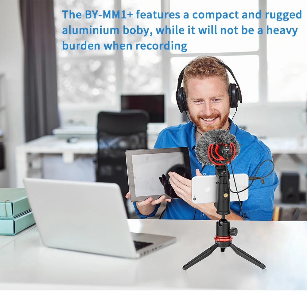 ОбзорBOYA BY-MM1 +-это усовершенствованный суперкардиоидный конденсаторный микрофон, который обеспечивает более низкий уровень шума и высокую чувствительность звука на ваших смартфонах, планшетах, зеркалах, потребительских видеокамерах, ПК и т. д. Благодаря своей работе с подключением и воспроизведением и не требуемой батарее, BY-MM1 + является идеальным аудио-решением для мобильных журналистов, vloggers и любителей видео. BY-MM1 + имеет компактный и прочный алюминиевый корпус, в то время как он не будет тяжелой нагрузкой при записи. 3,5 мм выход для наушников позволяет контролировать и воспроизведения аудио с Совместимость приложений, таким образом, вы можете быть уверены в целостности аудио. Съемный рыкот в комплекте®Lyre®Ударное крепление обеспечивает надежную и прочную конструкцию, эффективно устраняя шум от вибраций и обработки камерыОсновные характеристикиСовместимость со смартфонами, планшетами, DSLRs, потребительской видеокамерой, ПК и многое другоеСупер-кардиоидный конденсаторный микрофон дробовикаУлучшенная чувствительность и отношение сигнал-шумПодключи и работайПрочная металлическая конструкция3,5 мм выход для наушниковRycote Lyre ударное крепление и пушистое лобовое стекло в комплектеТехнические характеристикиПреобразователь: конденсатор ElectretПолярный узор: супер-кардиоидныйЧастотная характеристика: 20 Гц-18 кГцЧувствительность: -36 дБ ± 3 дБ (0 дБ = 1 В/па, 1 кГц)Отношение сигнал-шум: 78 дБРазъем: 3,5 мм TRRS линейный выход3,5 мм TRS выход для наушниковРазмеры: Ф26 × 100 мм (Ф1 × 3,9 ")Чистая Вес: 60 г (2,1 унций)Что входит в комплект1 Микрофон дробовика1 x Rycote Lyre shock mount1 х поролоновое ветровое стекло1 х пушистое ветровое стекло1x3,5 мм ТРС Выход кабель для Камера1x3,5 мм TRRS Выход кабель для смартфона1 х сумка для хранения1 гарантийный талон1 x Руководство по эксплуатации