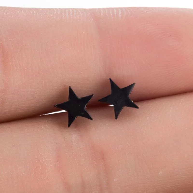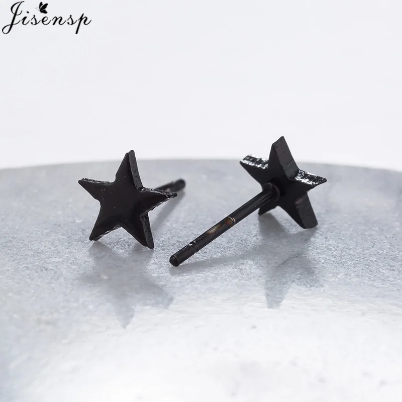 Серьги-гвоздики из нержавеющей стали для женщин и мужчин, черные серьги в стиле панк, хип-хоп, круглые серьги со звездами, символами Ом, подарочное Ювелирное Украшение