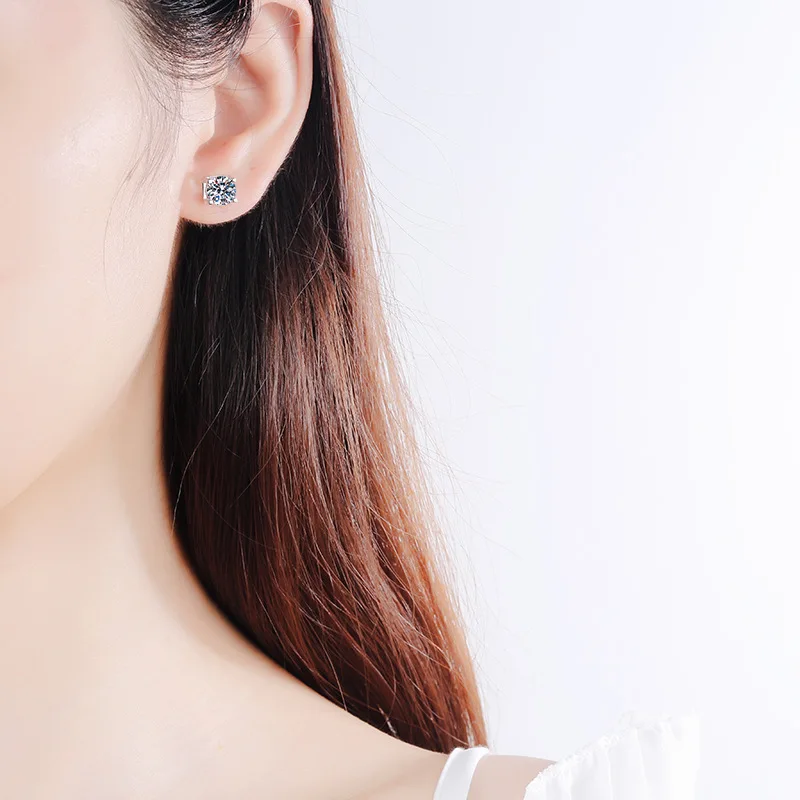 VVS1 круглой огранки в общей сложности 1.0ct алмаз Тесты прошел Муассанит 925 пробы серебряные серьги, хорошее ювелирное изделие, подарок для девушки