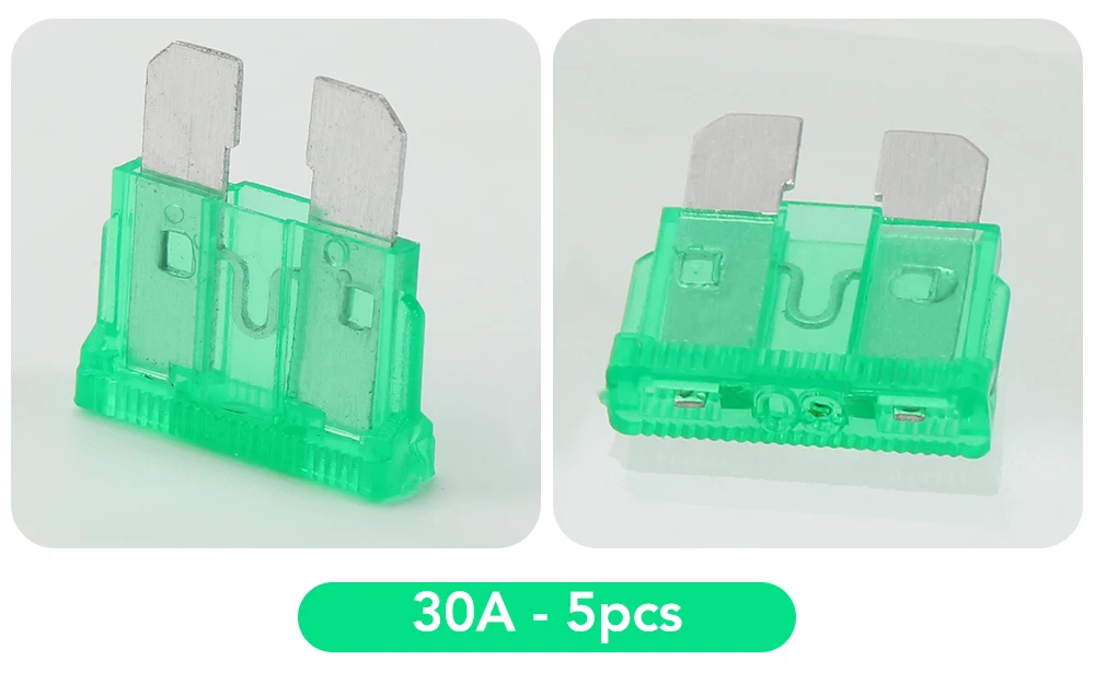 2A/3A/5A/7.5A/10A/15A/20A/25A/30A/35A, 10 видов стандартных предохранителей.