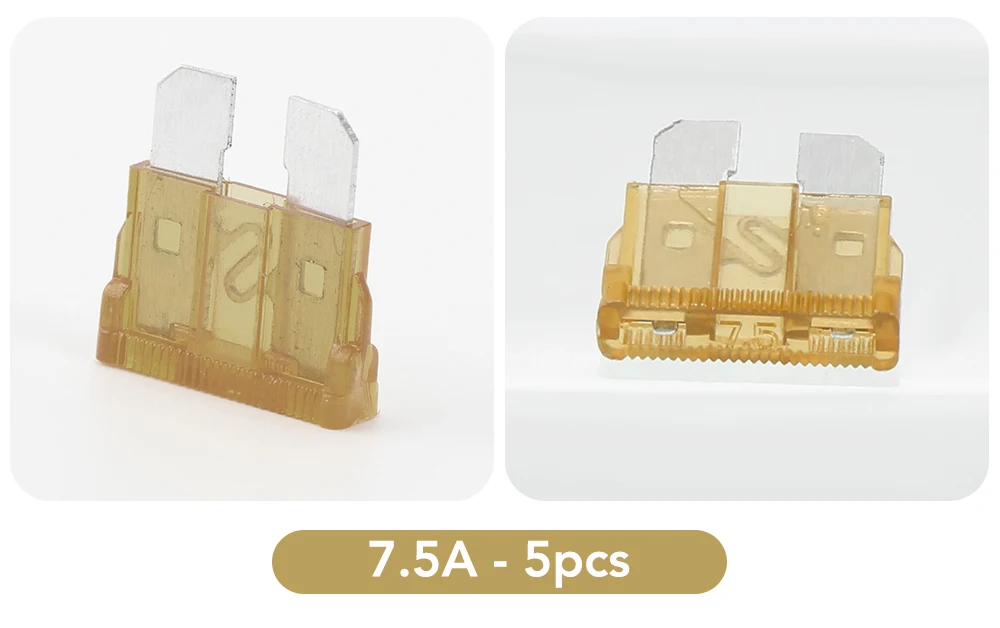 2A/3A/5A/7.5A/10A/15A/20A/25A/30A/35A, 10 видов стандартных предохранителей.