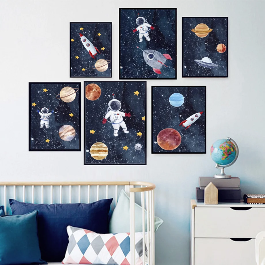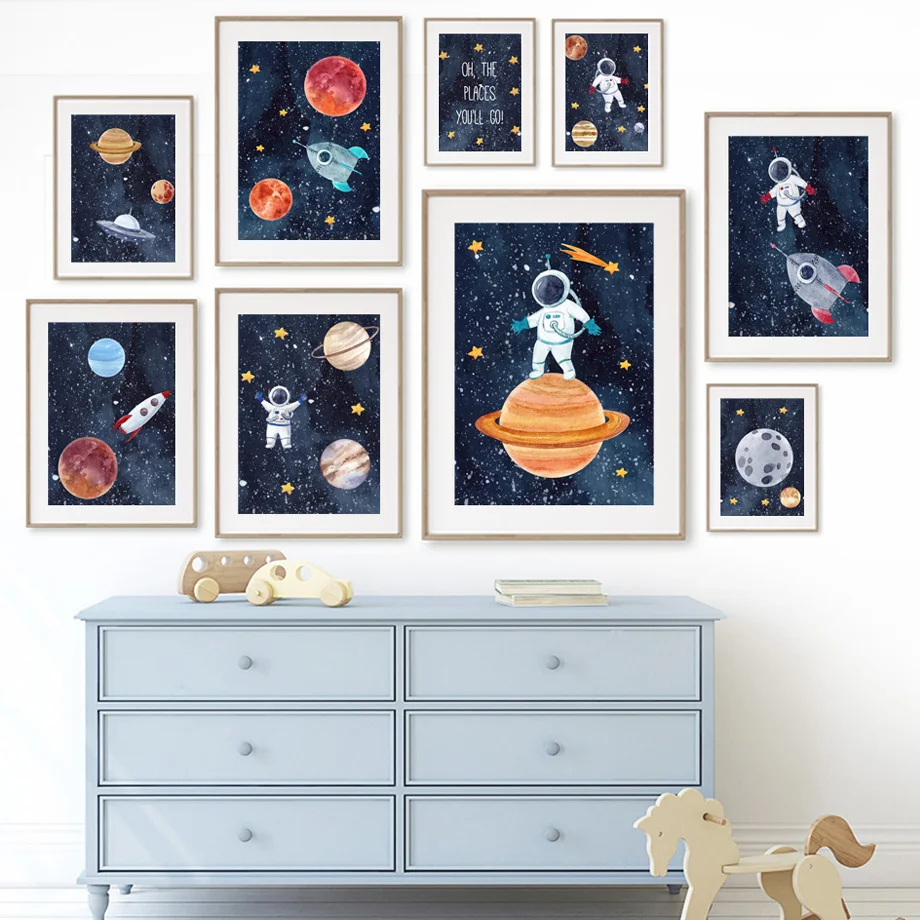 Астронавт Галактика космический челнок ракета Алфавит настенная живопись холст скандинавские плакаты и принты настенные картины декор для детской комнаты