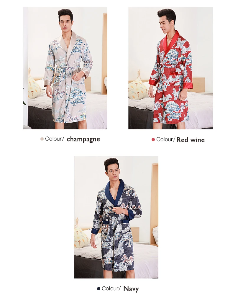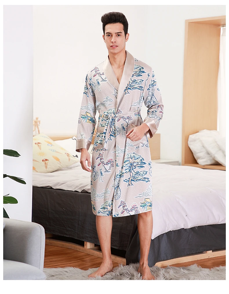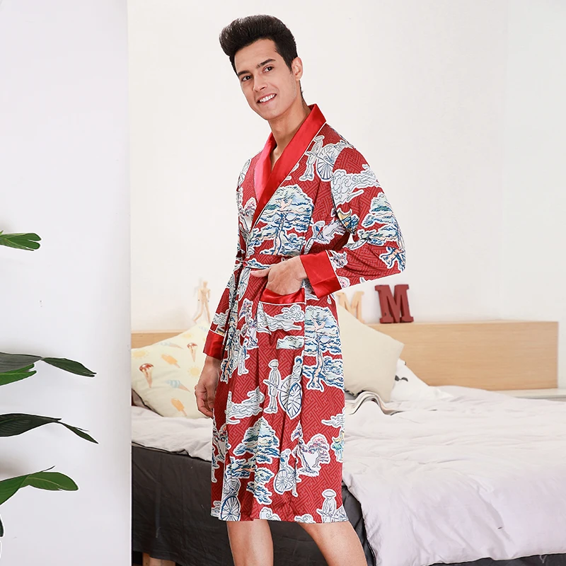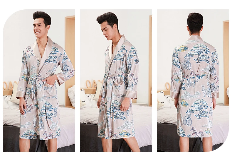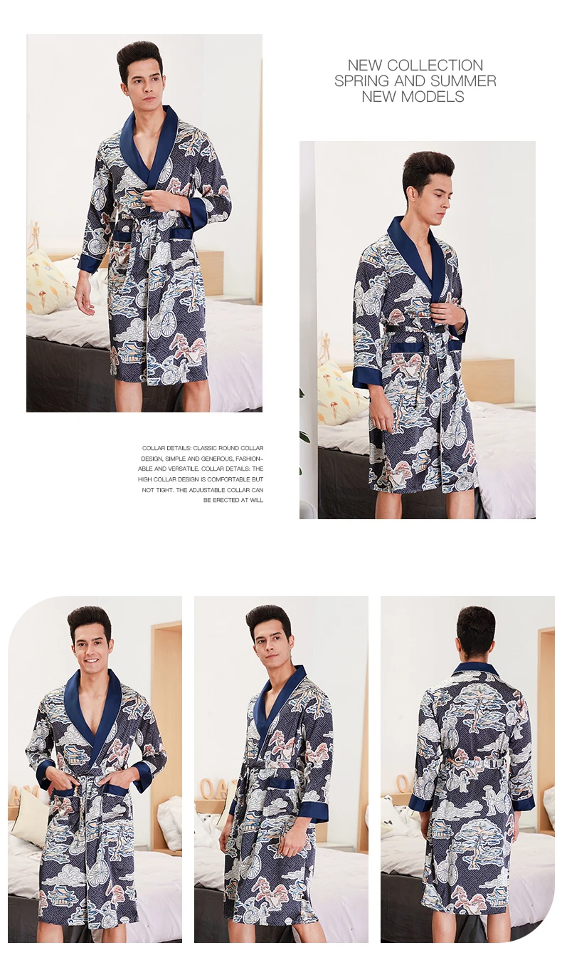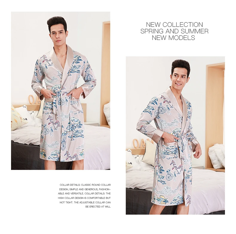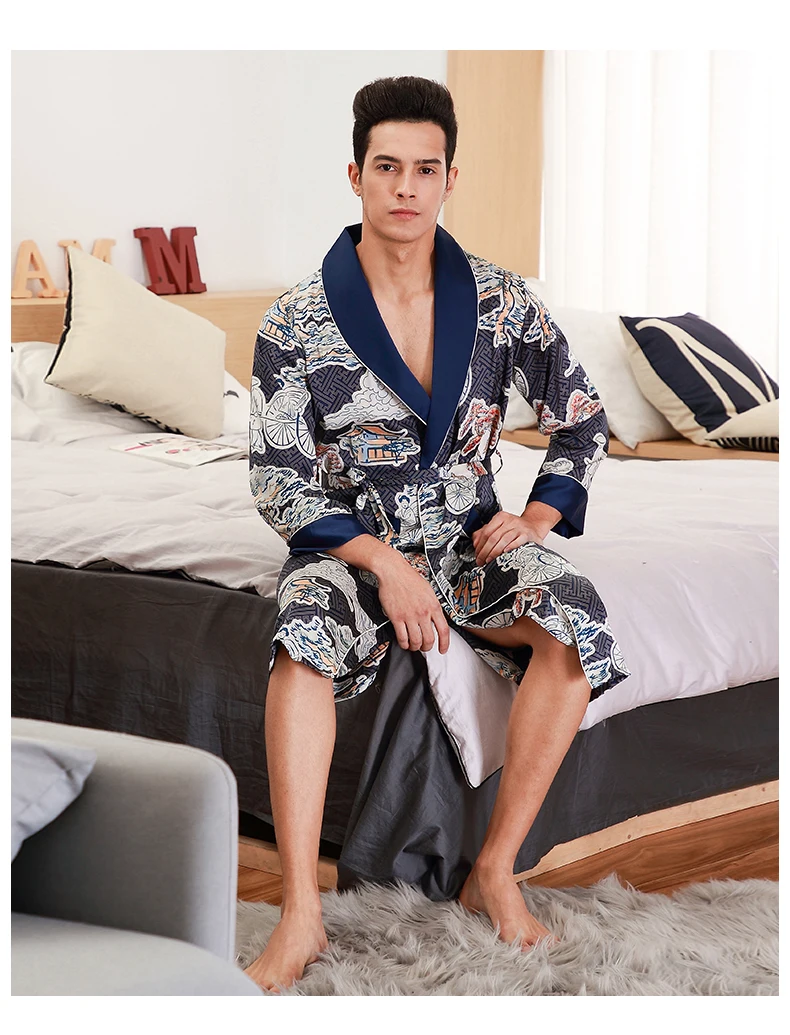 Халат-кимоно мужской, Шелковый, с длинным рукавом, для весны и осени