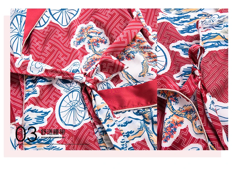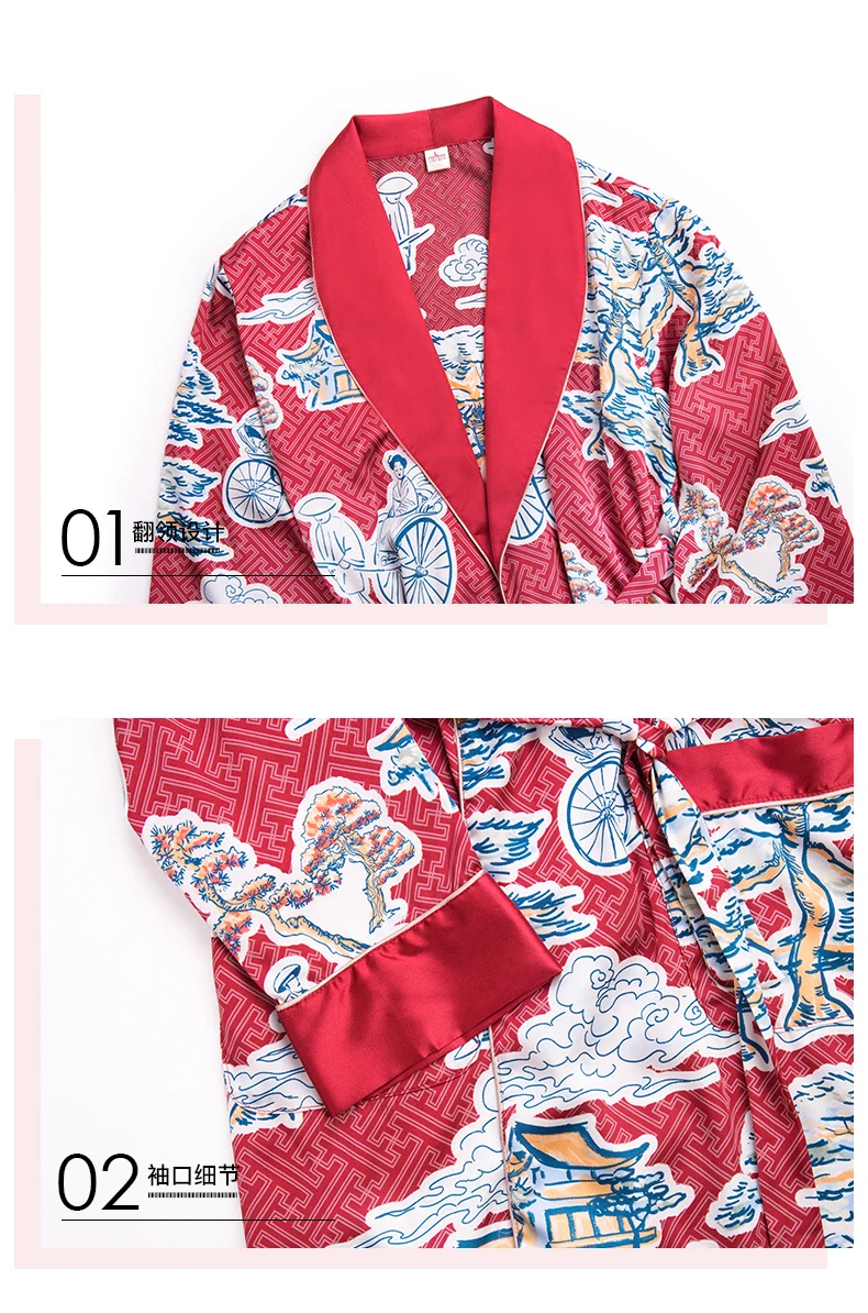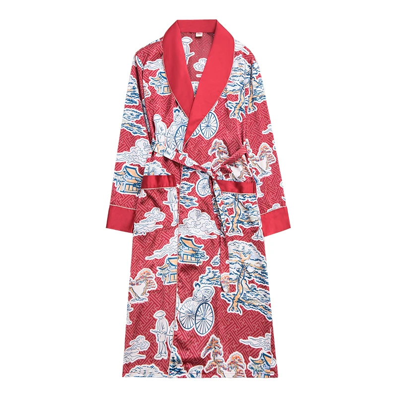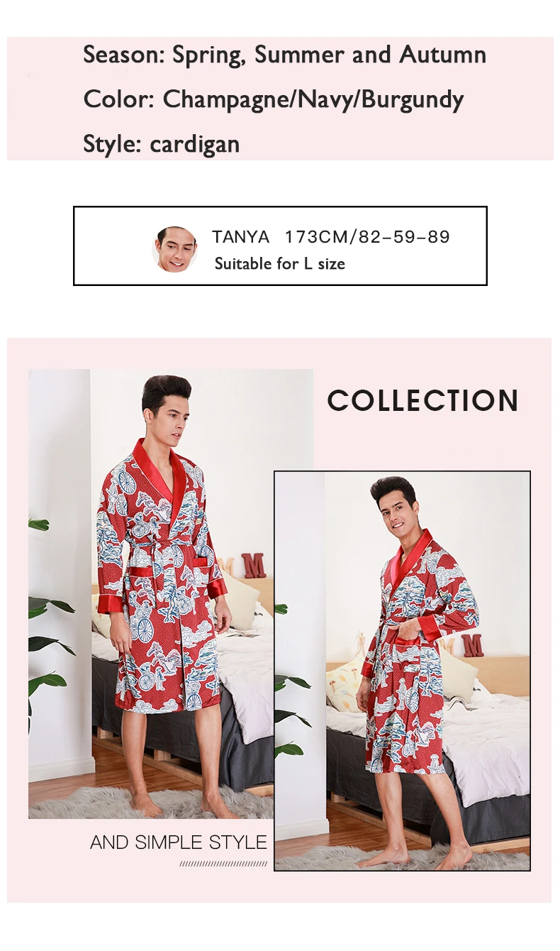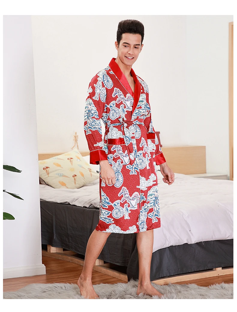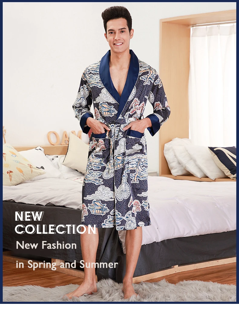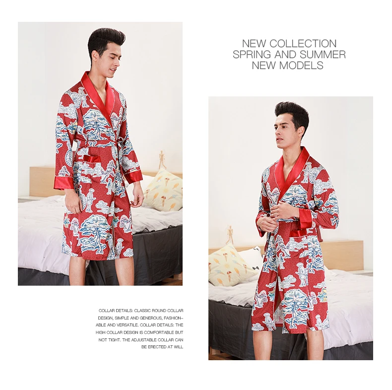 Халат-кимоно мужской, Шелковый, с длинным рукавом, для весны и осени