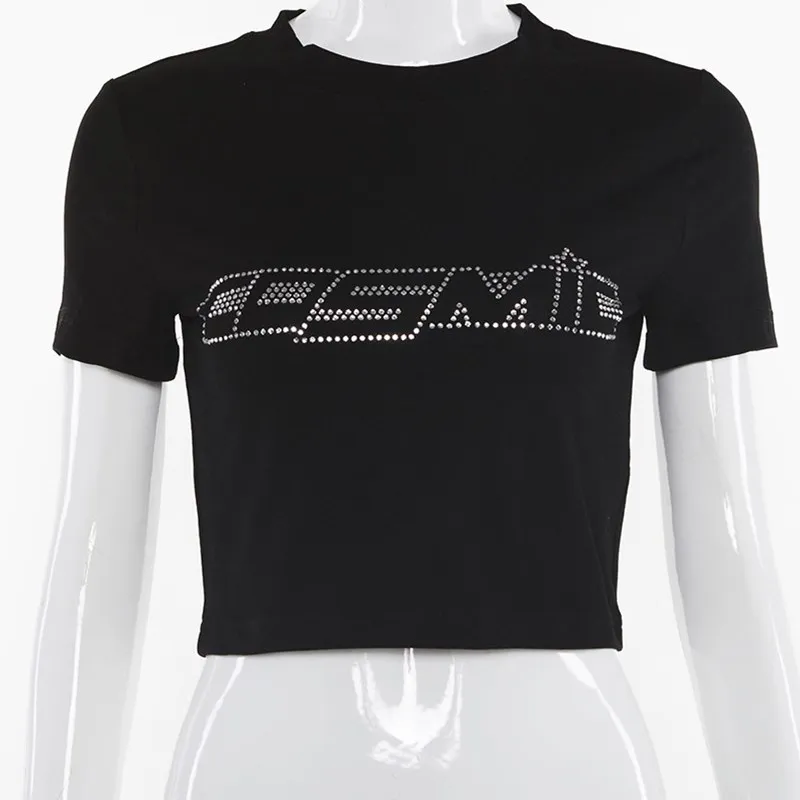 Женский летний кроп-топ Y2K со стразами, винтажные Ретро-футболки с круглым вырезом и коротким рукавом в стиле 90-х, со стразами, стразы
