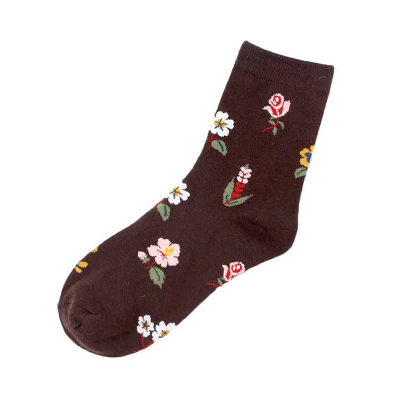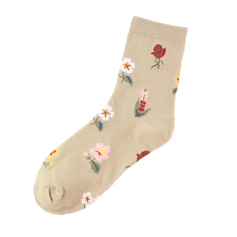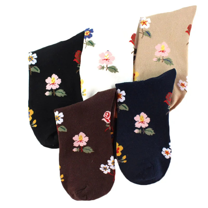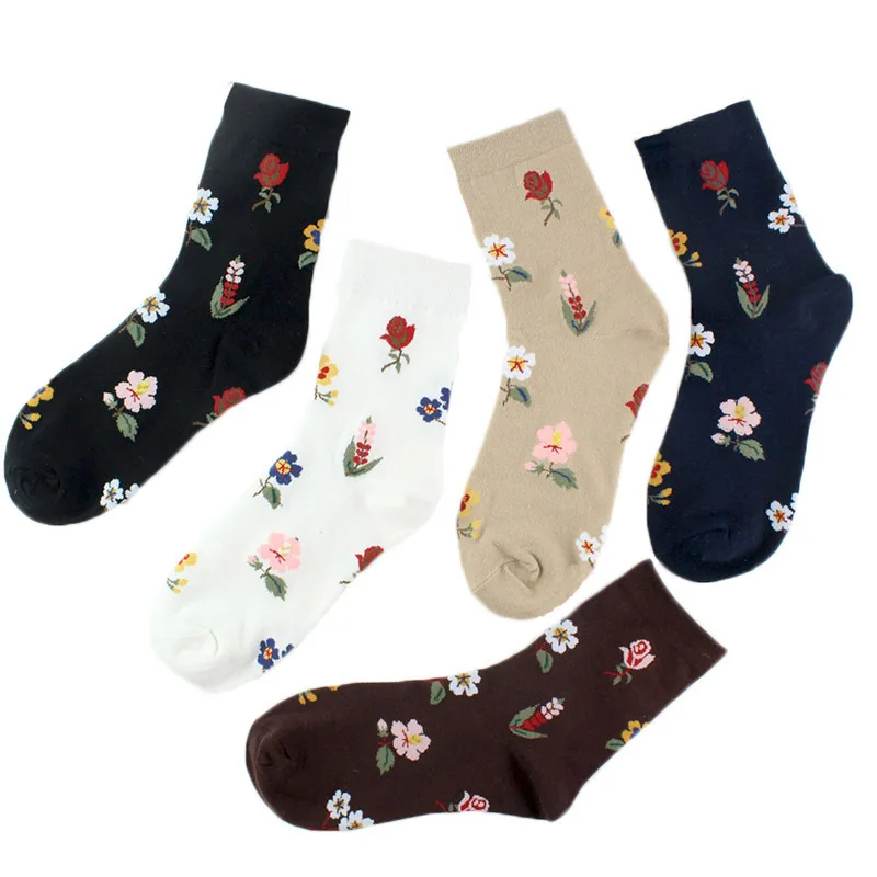 Новые милые носки с цветами из хлопка для женщин в стиле Харадзюку, японские повседневные зимние женские милые носки средней длины для девочек, винтажные Длинные Модные Цветочные Носки