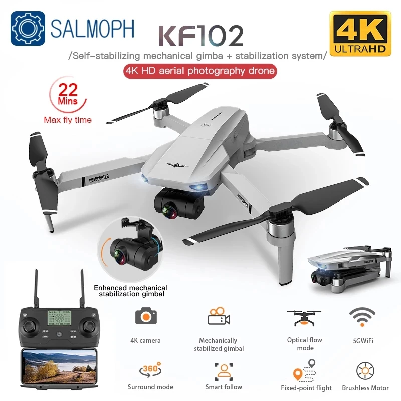 Название: Дрон KF102Датчик давления: установка высотыМотор: 1503 бесщеточный моторМощность двигателя: 1700/квРегулировка электрической мощности: 30AСпособ приема WIFI для смартфона: 5G WIFIШарнир: двухосевая Механическая самостабилизирующая головкаОбъектив: самостабилизирующий объектив с защитой от тряскиМакс дистанционный пульт Размер зажима для телефона: 5,5 дюймовБатарея дистанционного управления: батарея AA * 3 (не входит в комплект)Аккумулятор дрона: 7,4 в 2200 мАчРасстояние управления (свободное взаимодействие и отсутствие окклюзии):800 мРасстояние передачи изображения Wi-Fi (свободное взаимодействие и отсутствие окклюзии): около 500 мВремя полета: около 22 минВремя зарядки: около 3 часовUsb-зарядка: 5 ВРазмер продукта: раскладывающийся 32x30x6,5 см со складками на 16x6.5x8cmВес дрона: 330 гПиксель: 4K HD камераОбъектив камеры: регулируемая камера с помощью передатчика, 120 °Фокусное расстояние: 50xРучная съемка жестов/видеозапись: 1-5 мФронтальная камера:Разрешение видео: 1920*1080PРазрешение фото: 4096*3072PЧастота кадров: 25 кадров в секундуНижняя Камера:Разрешение видео: 1280*720PРазрешение фото: 1280*720PЧастота кадров: 25 кадров в секундуПосылка включает в себя:1 x Квадрокоптер KF102 RC1 х пульт дистанционного управления1 или 2 или 3x7,4 V 2200mAh Lipo батарея (вы выбираете)4 запасных пропеллера1 х USB кабель для зарядки1 отвертка1 x Руководство пользователя