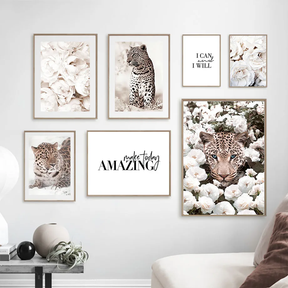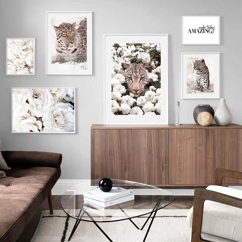 Настенная картина на холсте Белый Цветущий пион скрытый Леопард скандинавские постеры и принты настенные картины для украшения гостиной