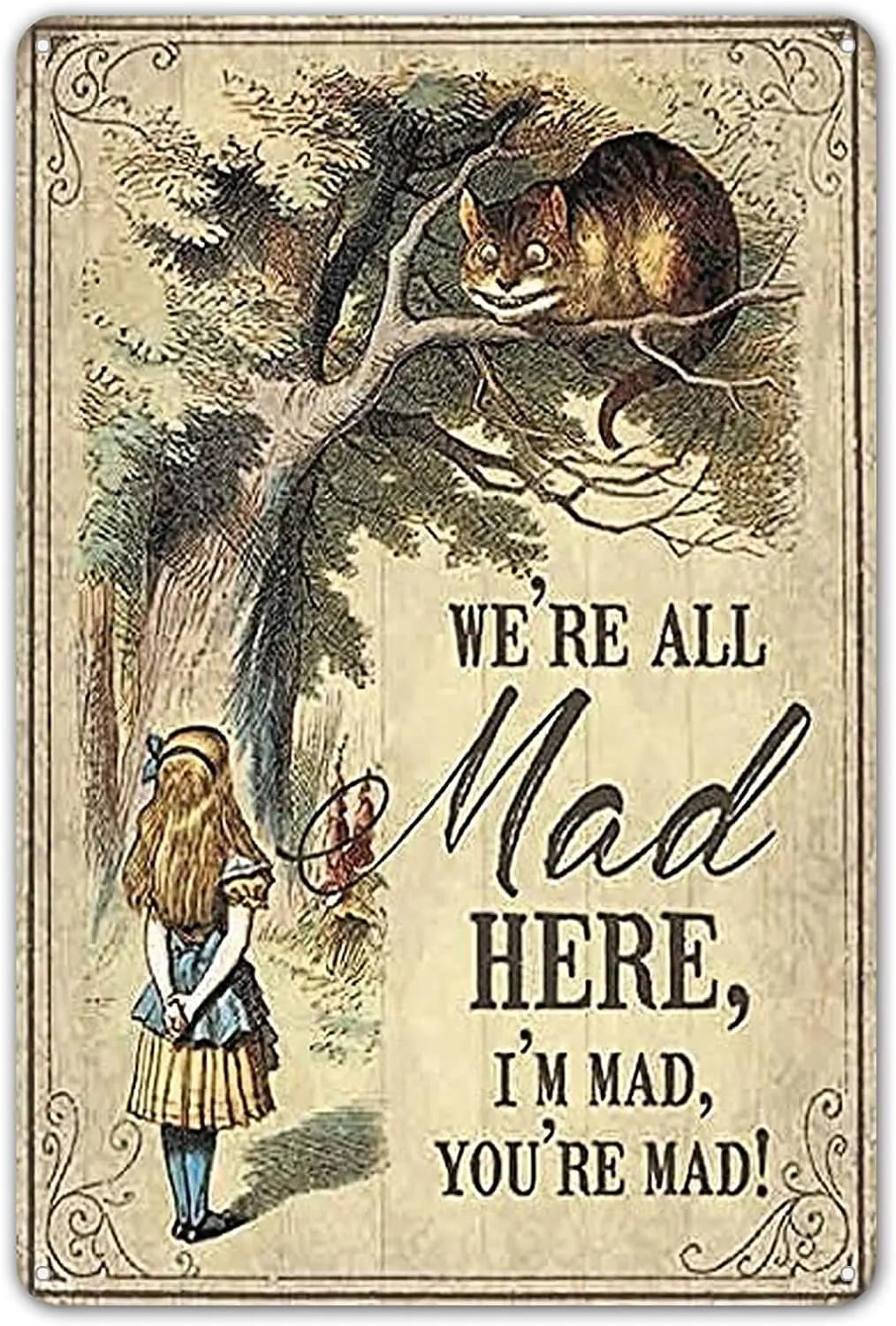 Плакат Алиса в стране чудес ZYPENG, Мы все сумасшедшие здесь таблички, плакат для дома, магазина, кафе, Настенный декор, Жестяная Табличка
