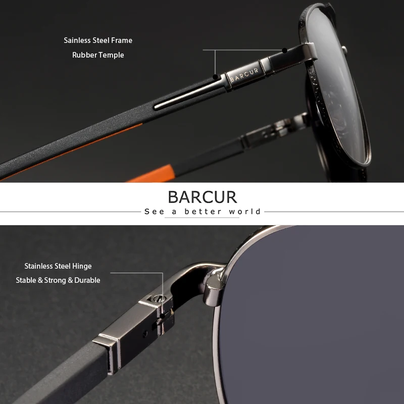 Мужские поляризационные солнцезащитные очки BARCUR из нержавеющей с...