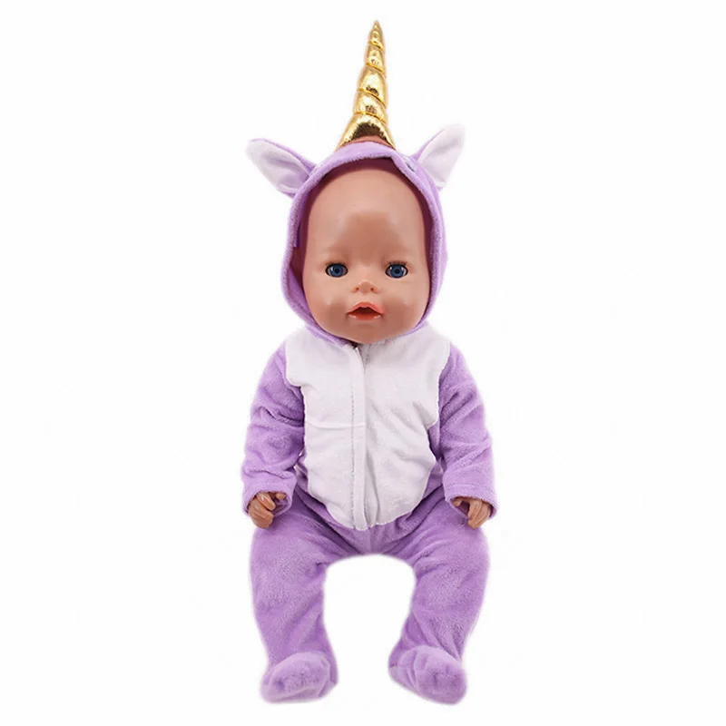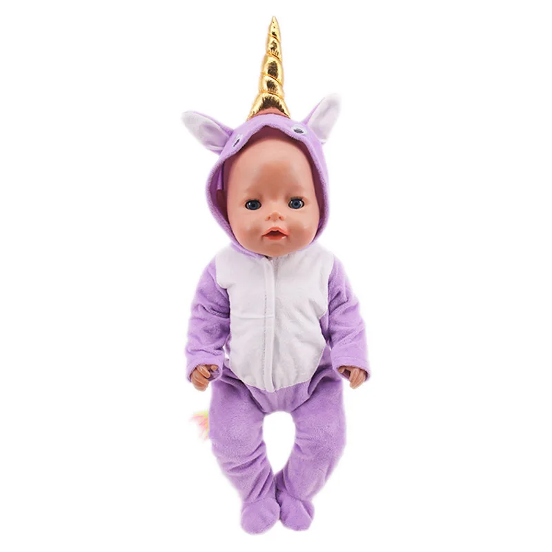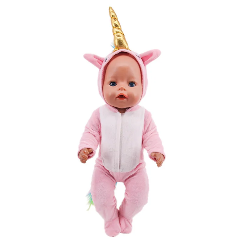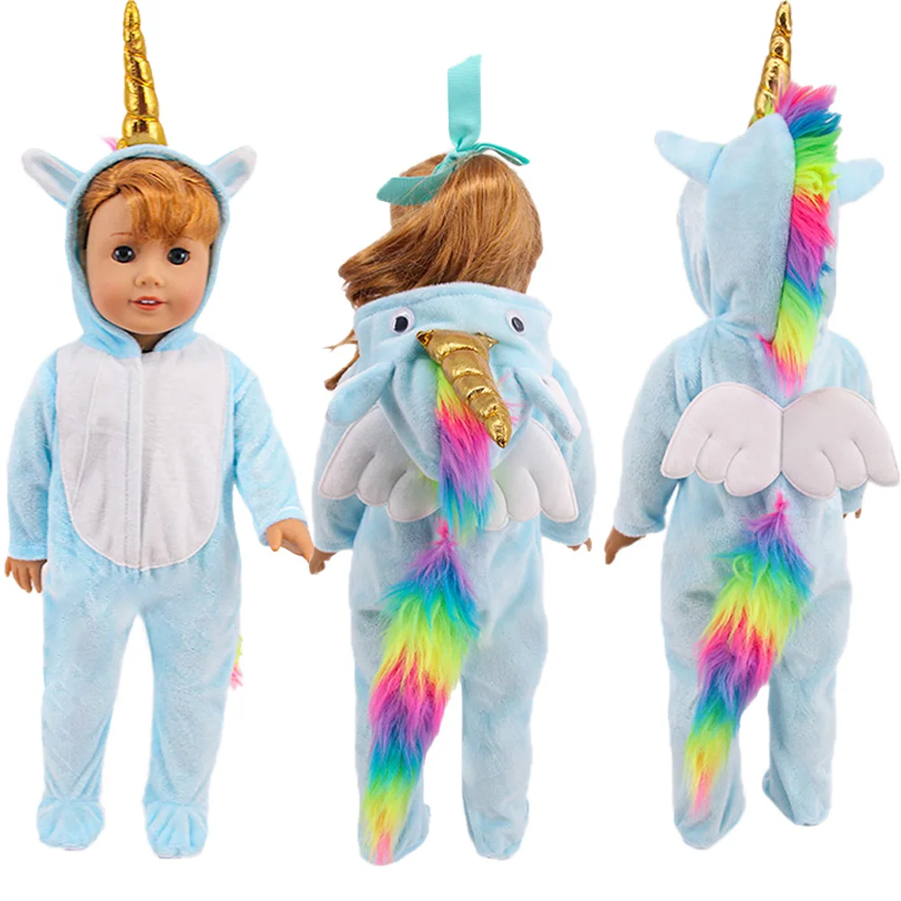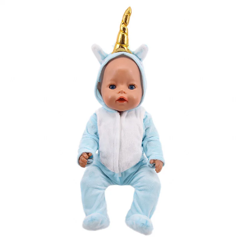 Кукольная одежда синийрозовый комбинезон Единорог для 43 см для ухода за ребенком для мам Одежда для новорожденных подходят 18 дюймов американская кукла нашего поколения для маленьких девочек Рождественский подарок