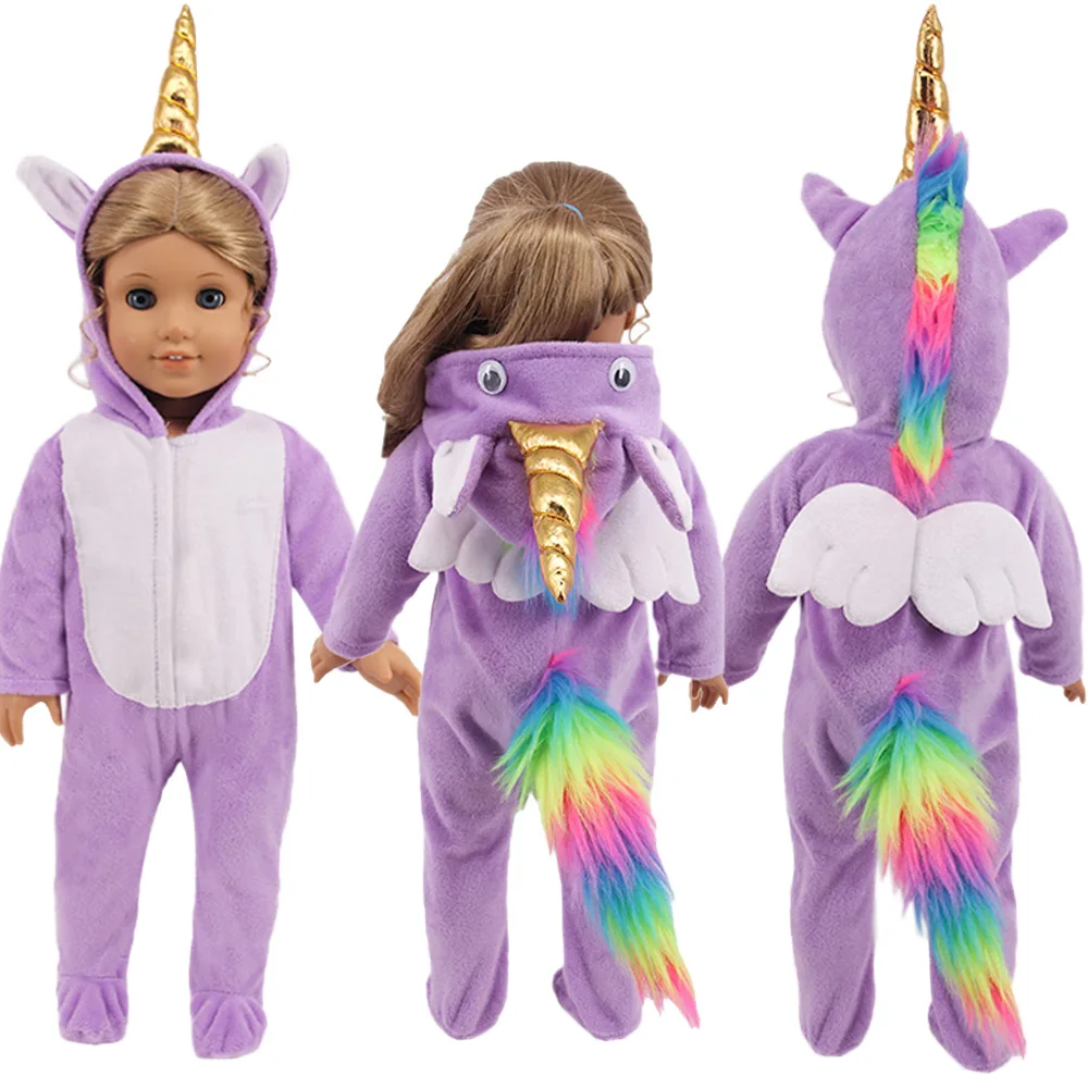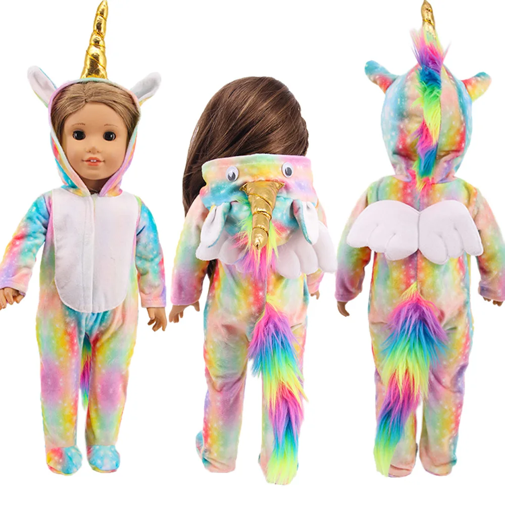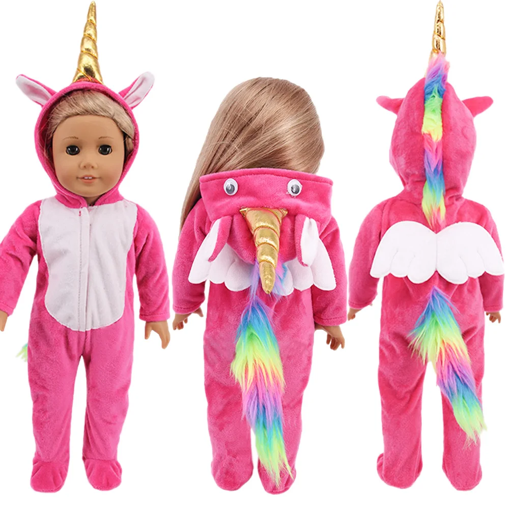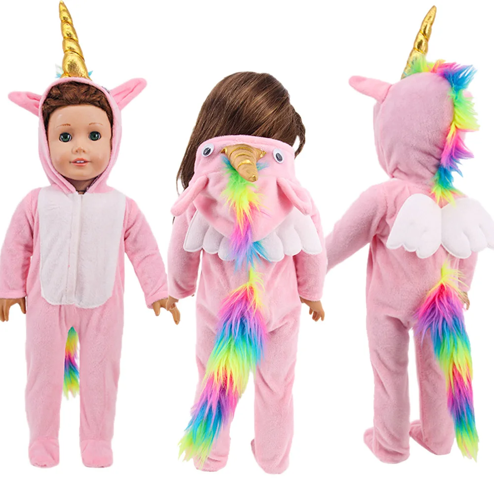 Кукольная одежда синийрозовый комбинезон Единорог для 43 см для ухода за ребенком для мам Одежда для новорожденных подходят 18 дюймов американская кукла нашего поколения для маленьких девочек Рождественский подарок