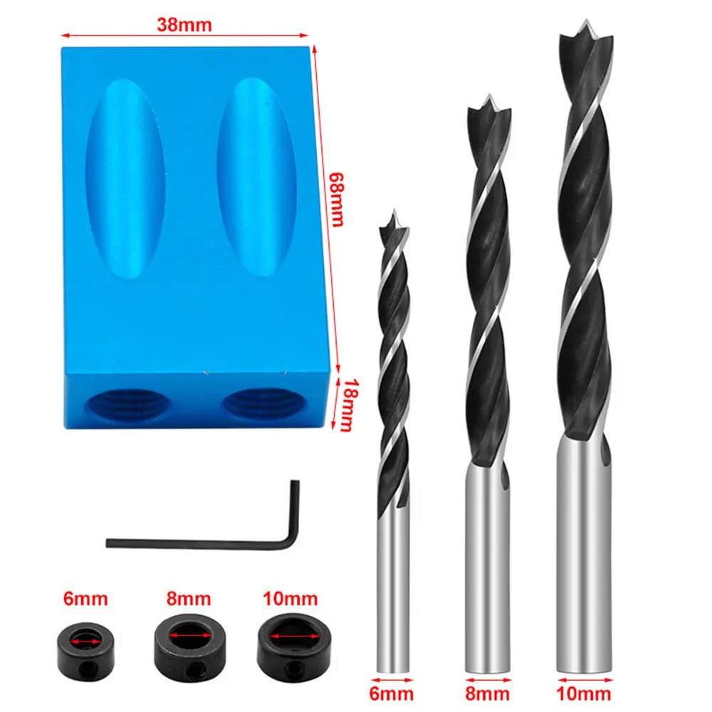 Деревообрабатывающее наклонное отверстие локатор сверла карманное отверстие джиг комплект 15 градусов угол сверла руководство набор Дырокол DIY столярные инструменты