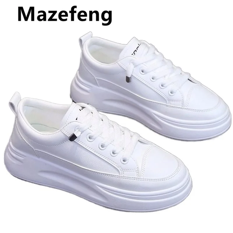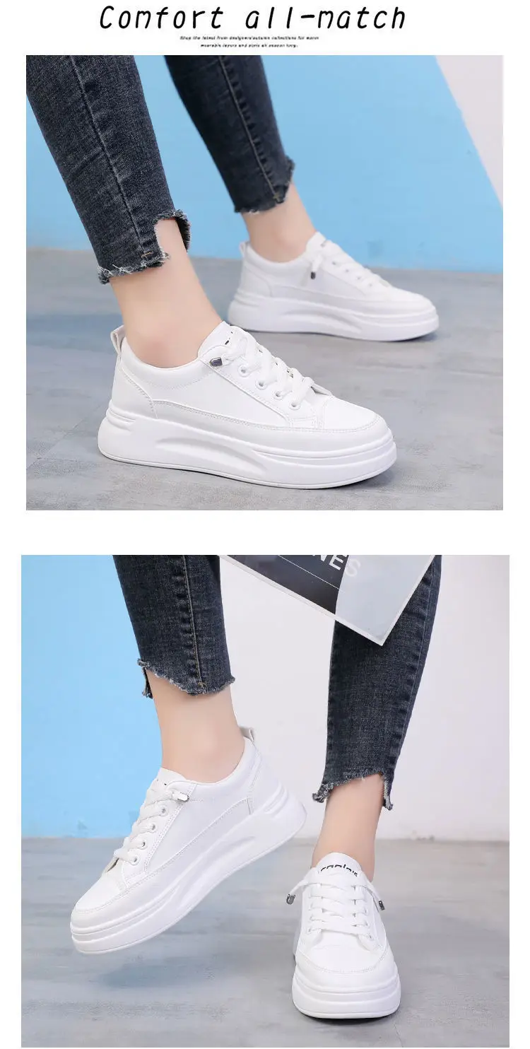 Кроссовки женские из сплит-кожи, массивные, на шнуровке, повседневная обувь на платформе, белые