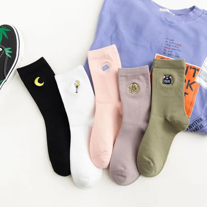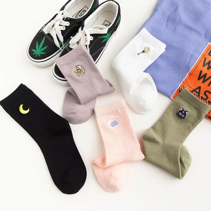 Женские носки, с вышивкой счастливой планеты, в японском и корейском стиле, в стиле Харадзюку