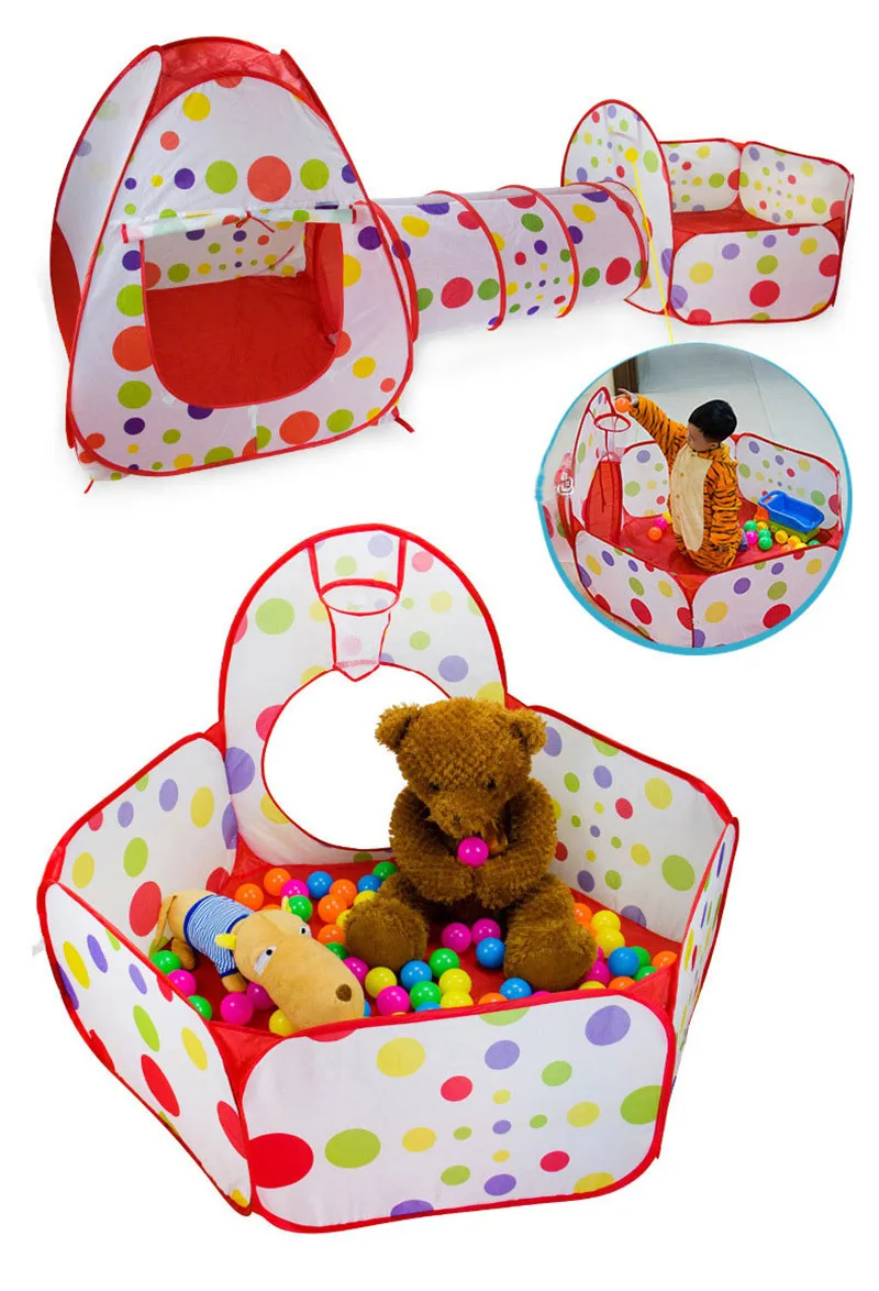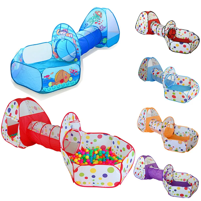 Игровая палатка 3 в 1, детские игрушки, бассейн для шаров, корзина для стрельбы, туннель для ползания для детей, Детский Складной Игровой домик, игры в помещении и на открытом воздухе