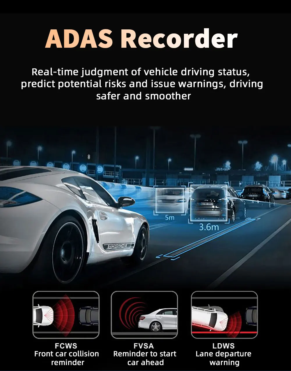 С функцией ADAS, с напоминанием о расстоянии транспортного средства, предупреждающим о столкновении, напоминанием об отклонении полосы движения