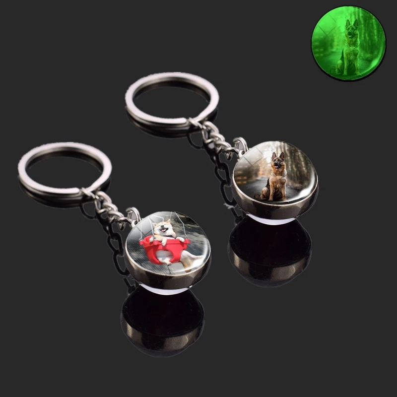Светящийся брелок для ключей с милой собачкой двухсторонняя Стекло мяч брелок бульдог Косплей Shiba Лисья Секретная служба (Inu пастырь автомобильный брелок Подвеска Украшения Подарки