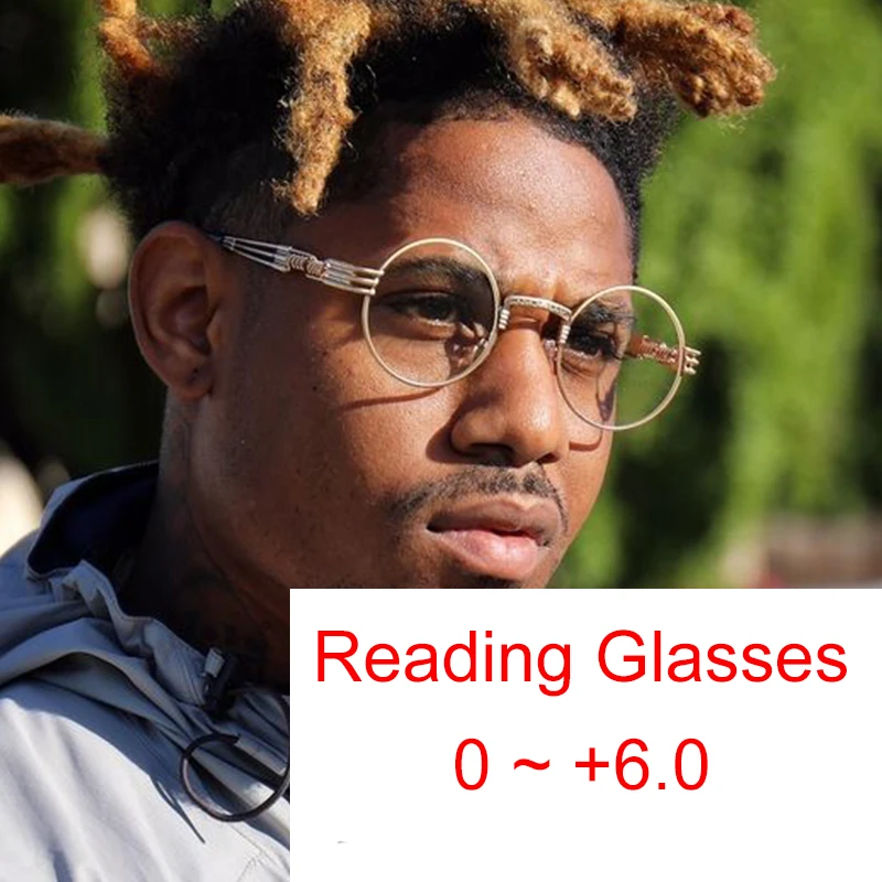 Винтаж стимпанк круглая Оправа очков для чтения Для мужчин Классический бренд дизайнерские антибликовыми свойствами светильник очки увеличительное + 1,5 + 2,0