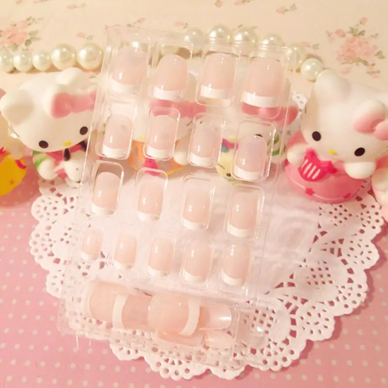 Искусственные ногти с клеем, натуральные, французские, короткие, накладные ногти, акриловые, долговечные, декоративные ногти, дизайн ногтей, 24 шт.