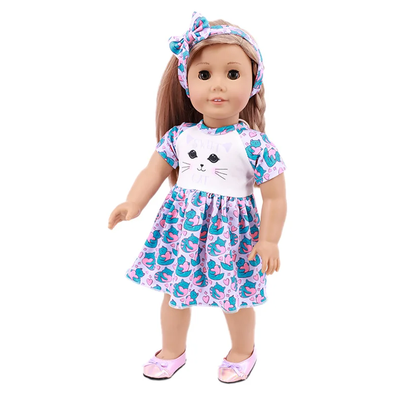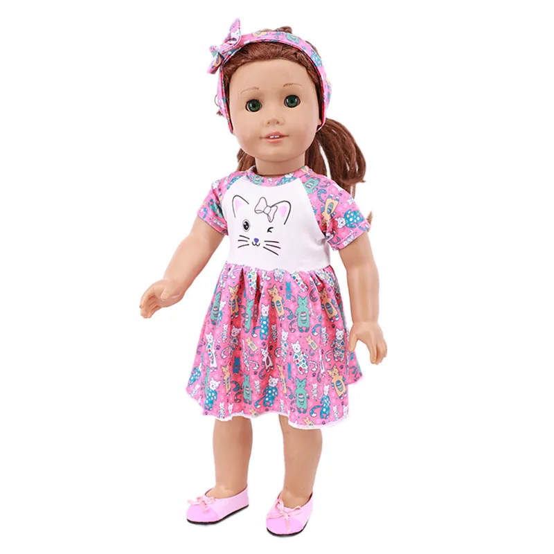 Милое Платье котенка для куклы 18 дюймов, американская кукла, игрушка для девочки 43 см, одежда для новорожденных, аксессуары, подарок нашему поколению